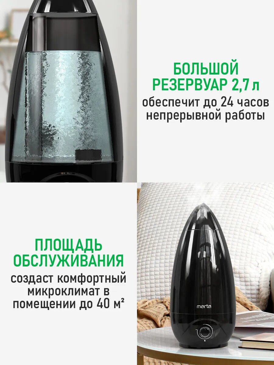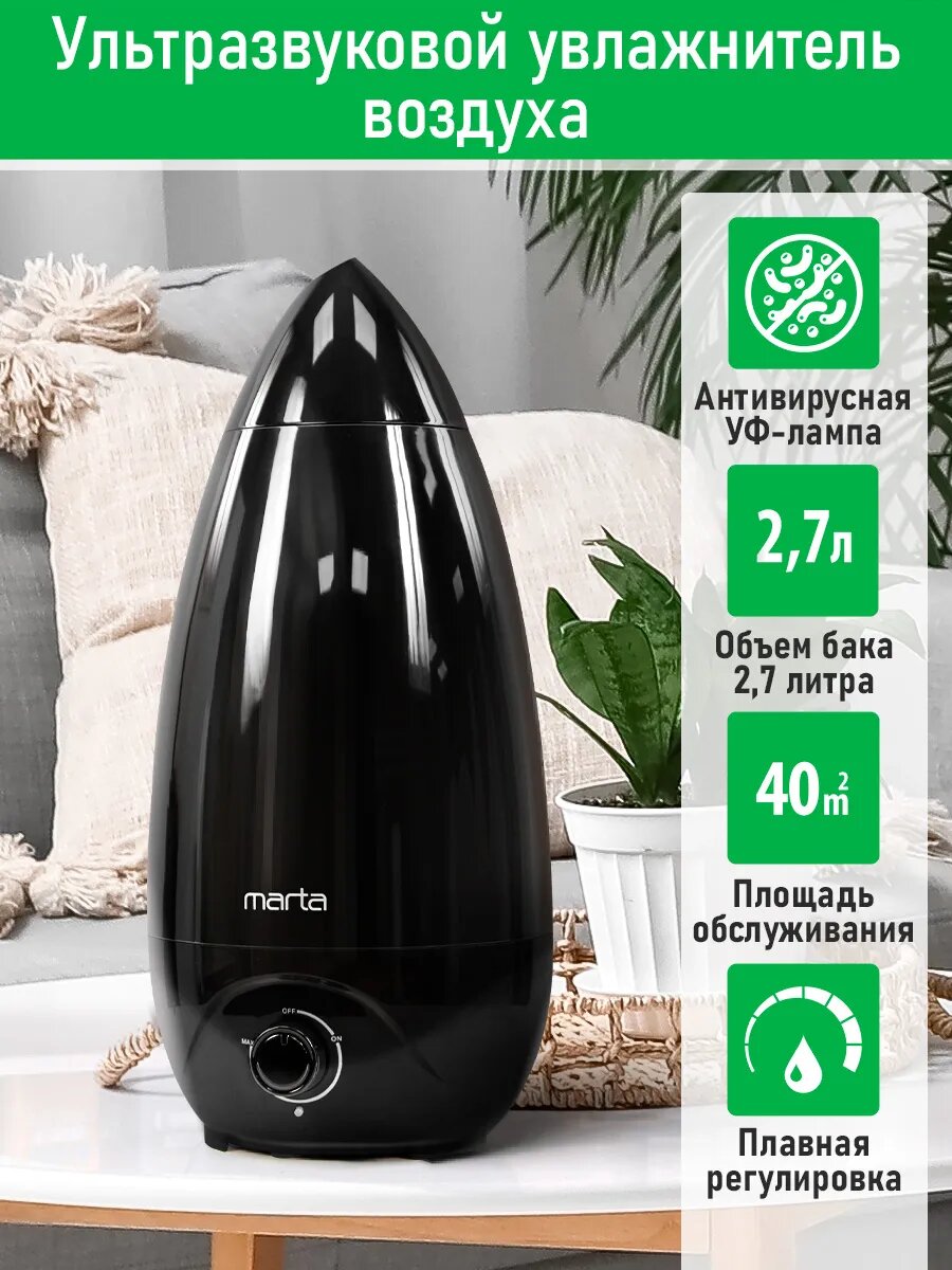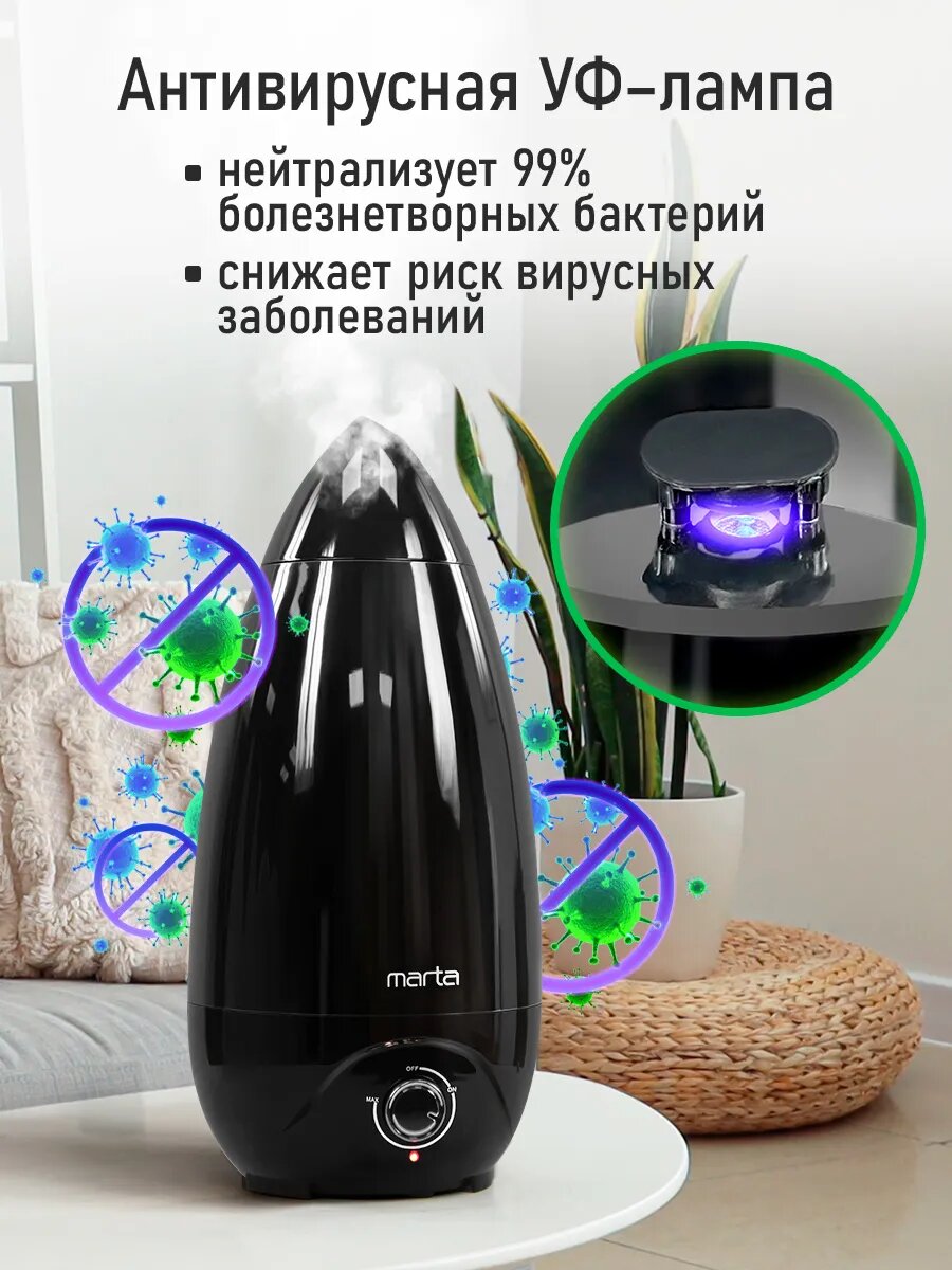 Увлажнитель воздуха ультразвуковой MARTA MT-HF4705A антивирусная УФ - лампа черный интересное: