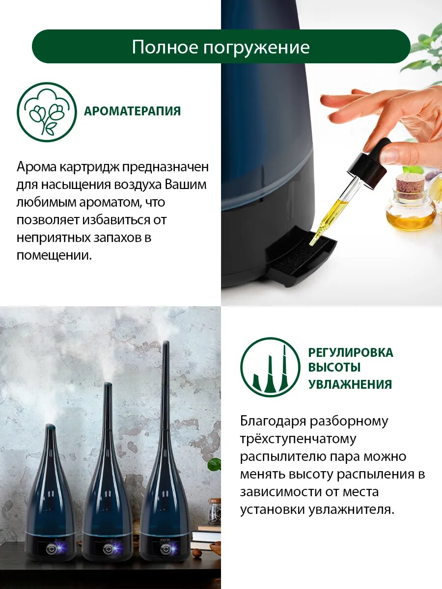| Дополнительные функции | ароматизация / подсветка / регулировка интенсивности увлажнения |