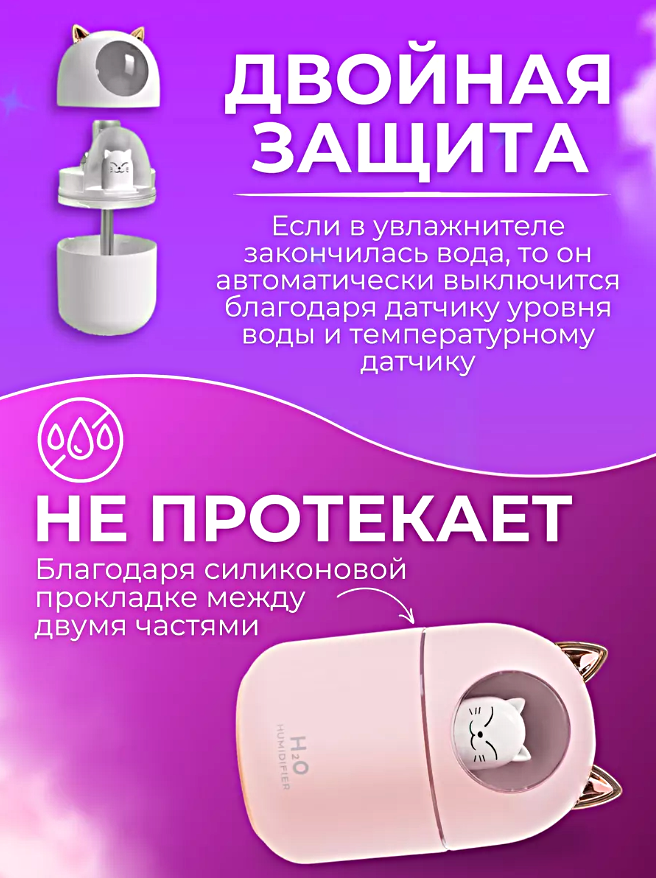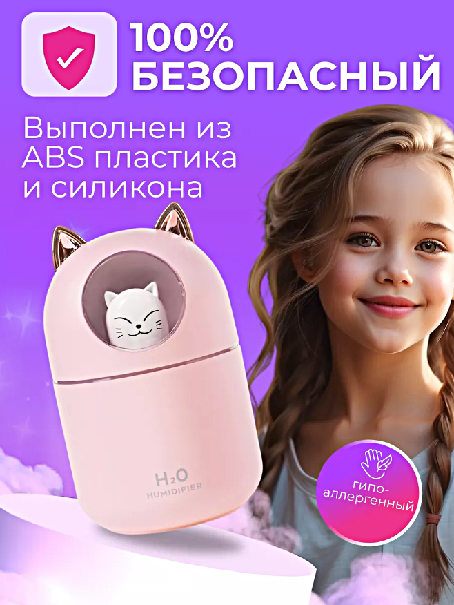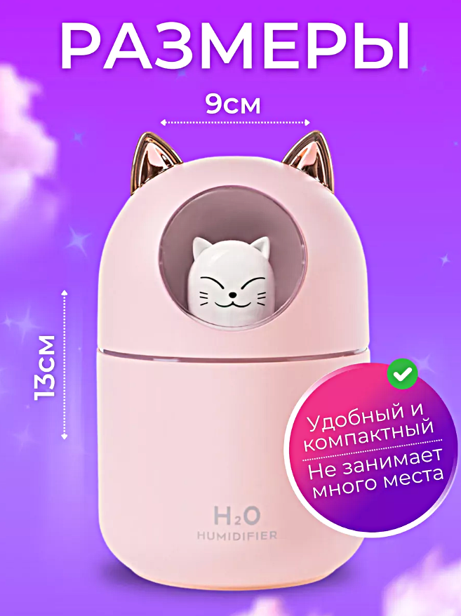 Увлажнитель воздуха с подсветкой Котик, Ультразвуковой аромадиффузор ночник для дома, Розовый интересное: