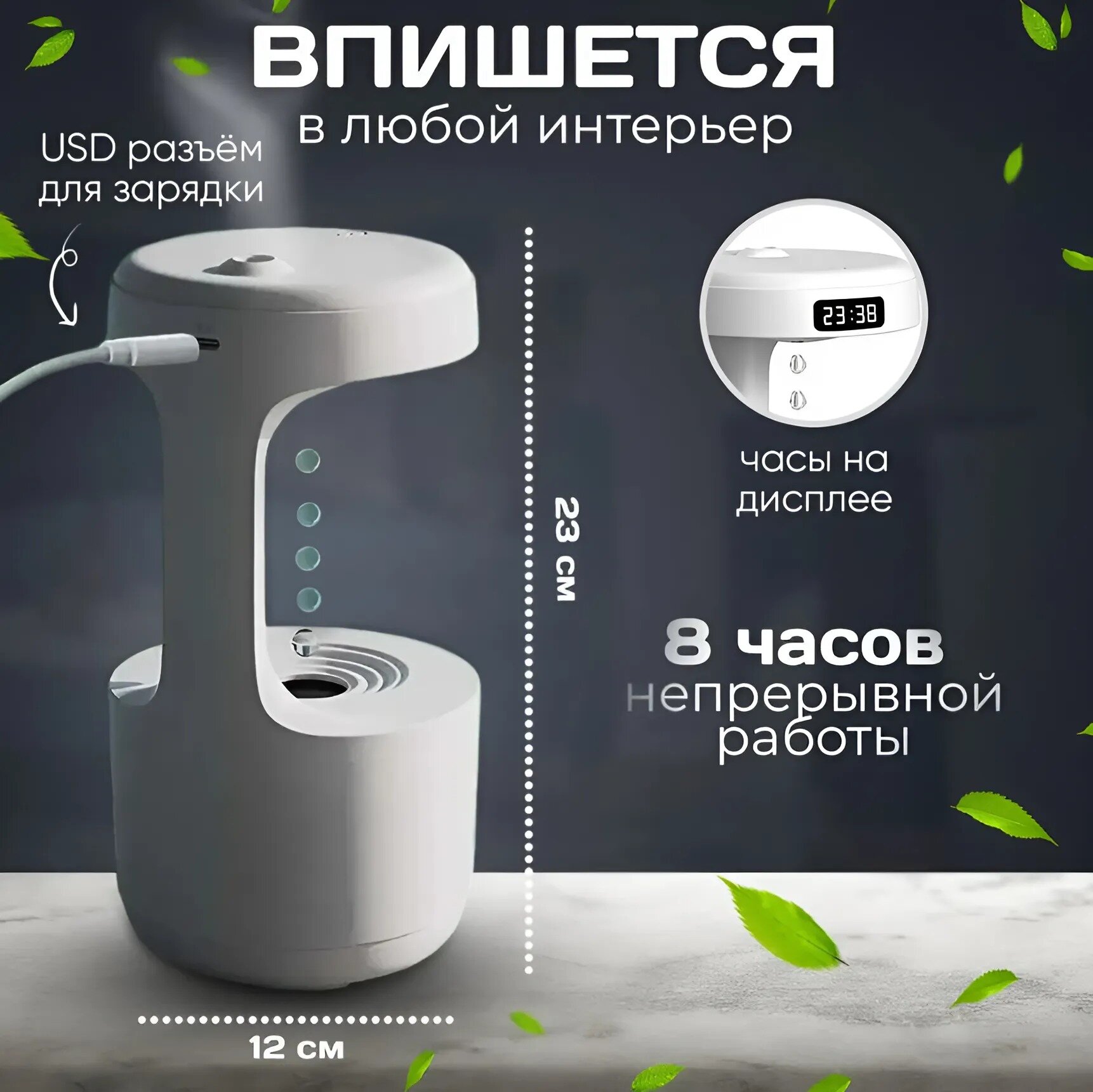 | Подробная комплектация | Увлажнитель антигравитационный; кабель; коробка |