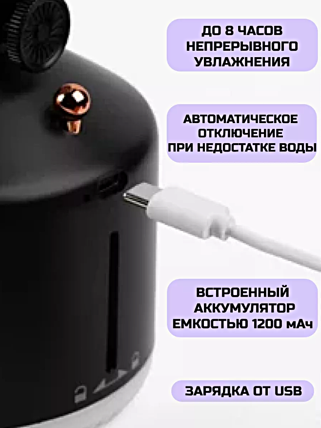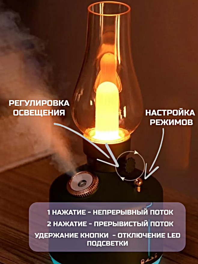 Увлажнитель воздуха ультразвуковой 3 в 1, Аромадиффузор с подсветкой, Ночник для дома, Ретро лампа, Черный интересное: