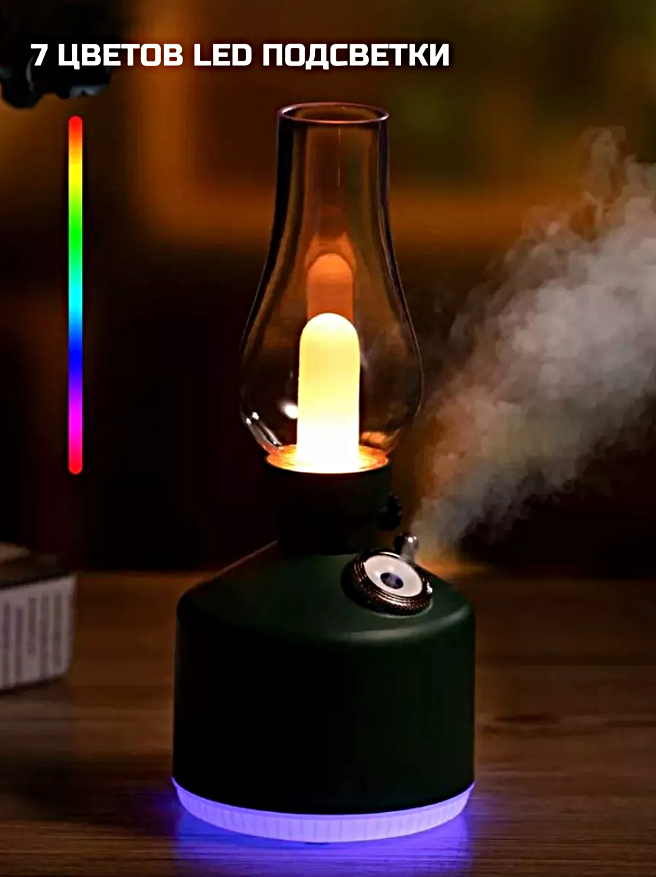 Увлажнитель воздуха ультразвуковой 3 в 1, Аромадиффузор с подсветкой, Ночник для дома, Ретро лампа, Зеленый