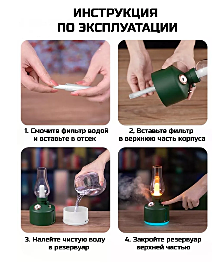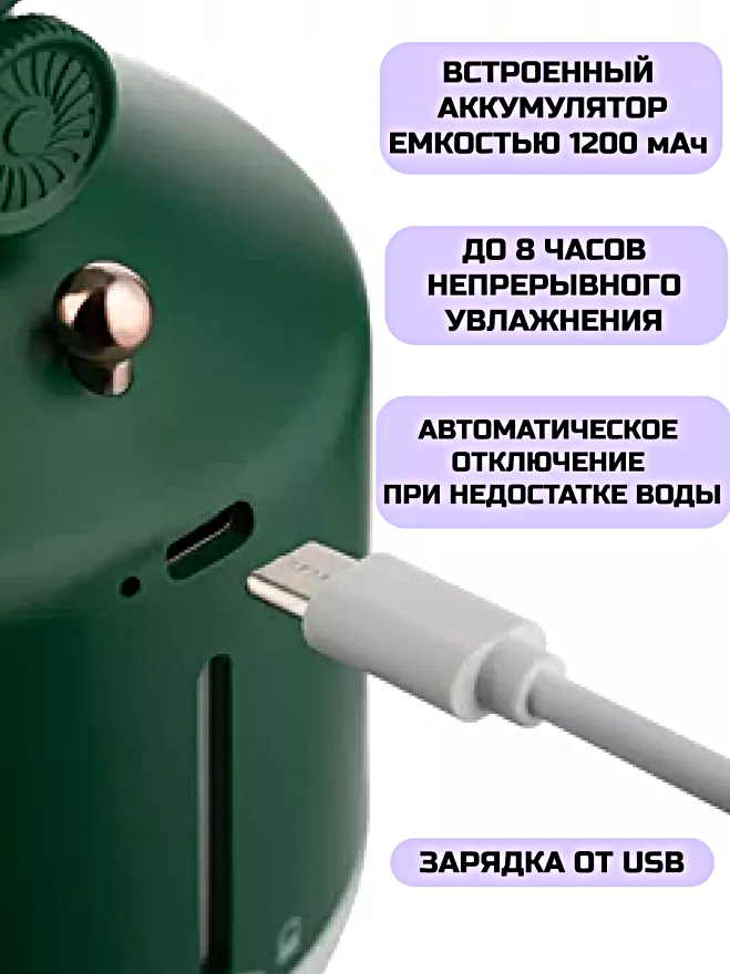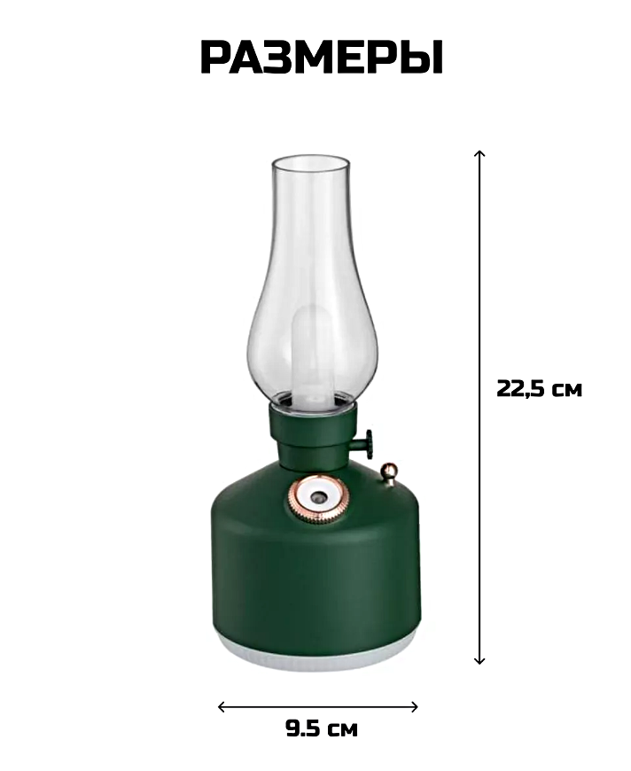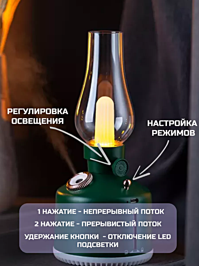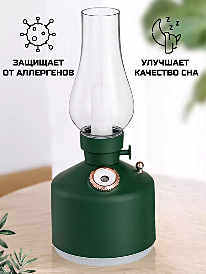 Увлажнитель воздуха ультразвуковой 3 в 1, Аромадиффузор с подсветкой, Ночник для дома, Ретро лампа, Зеленый интересное: