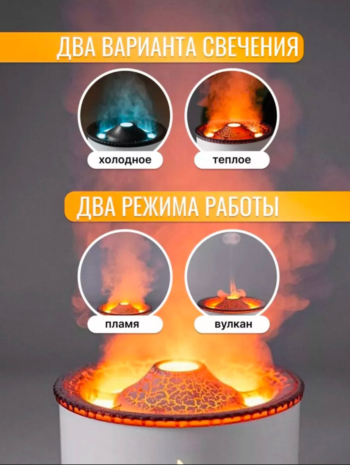Аромадиффузор-увлажнитель воздуха "Вулкан", увлажнение и ароматизация, два режима работы интересное: