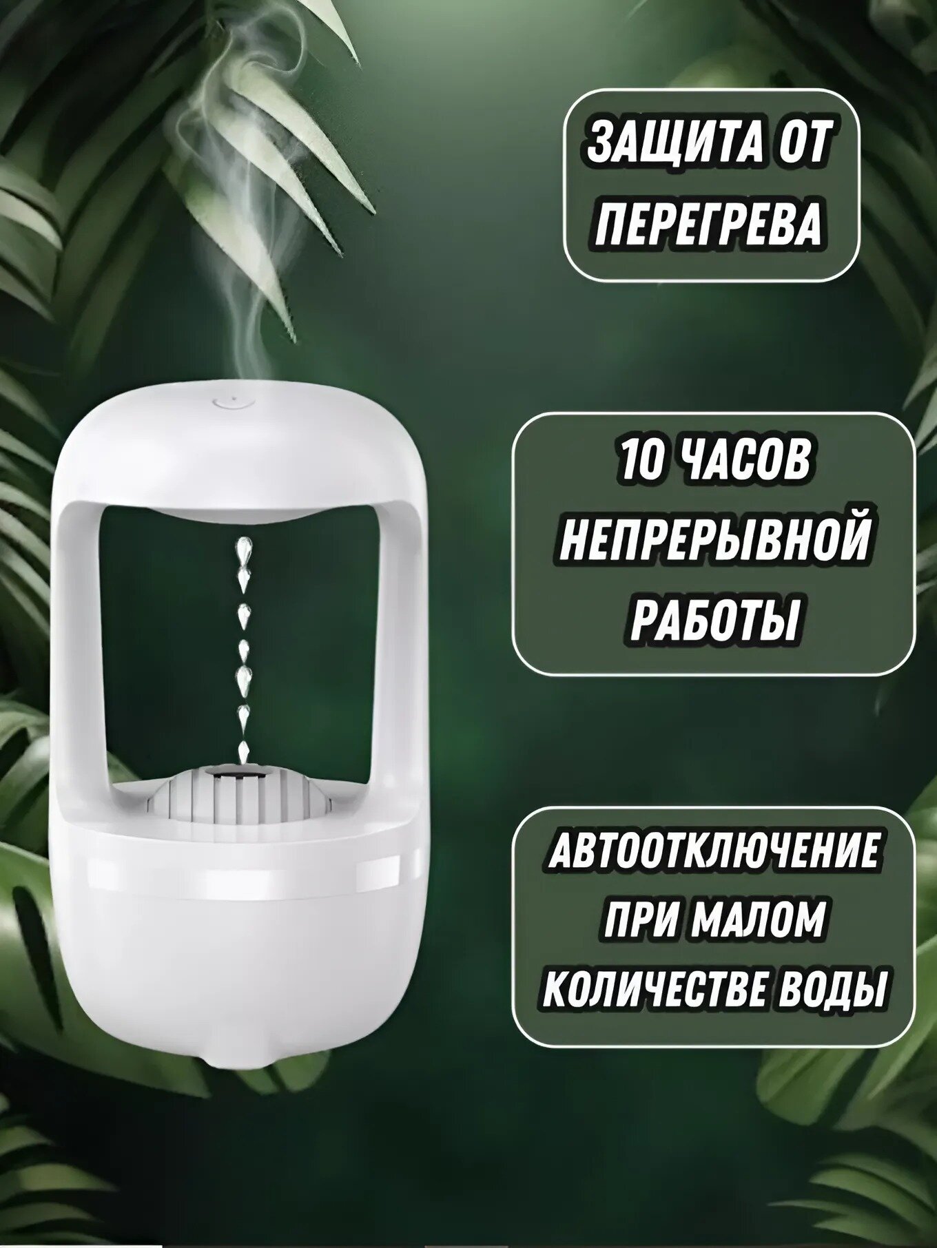 Антигравитационный увлажнитель аромадиффузор воздуха ночник с таймером, белый. интересное: