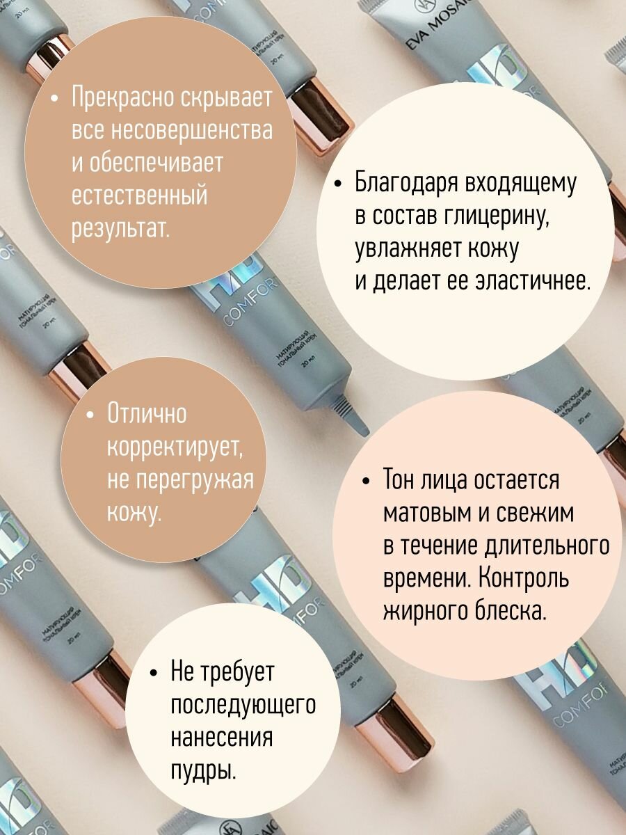 Купить EVA MOSAIC Тональный крем HD Comfort матирующий, 20 мл, 04 Медово-бежевый