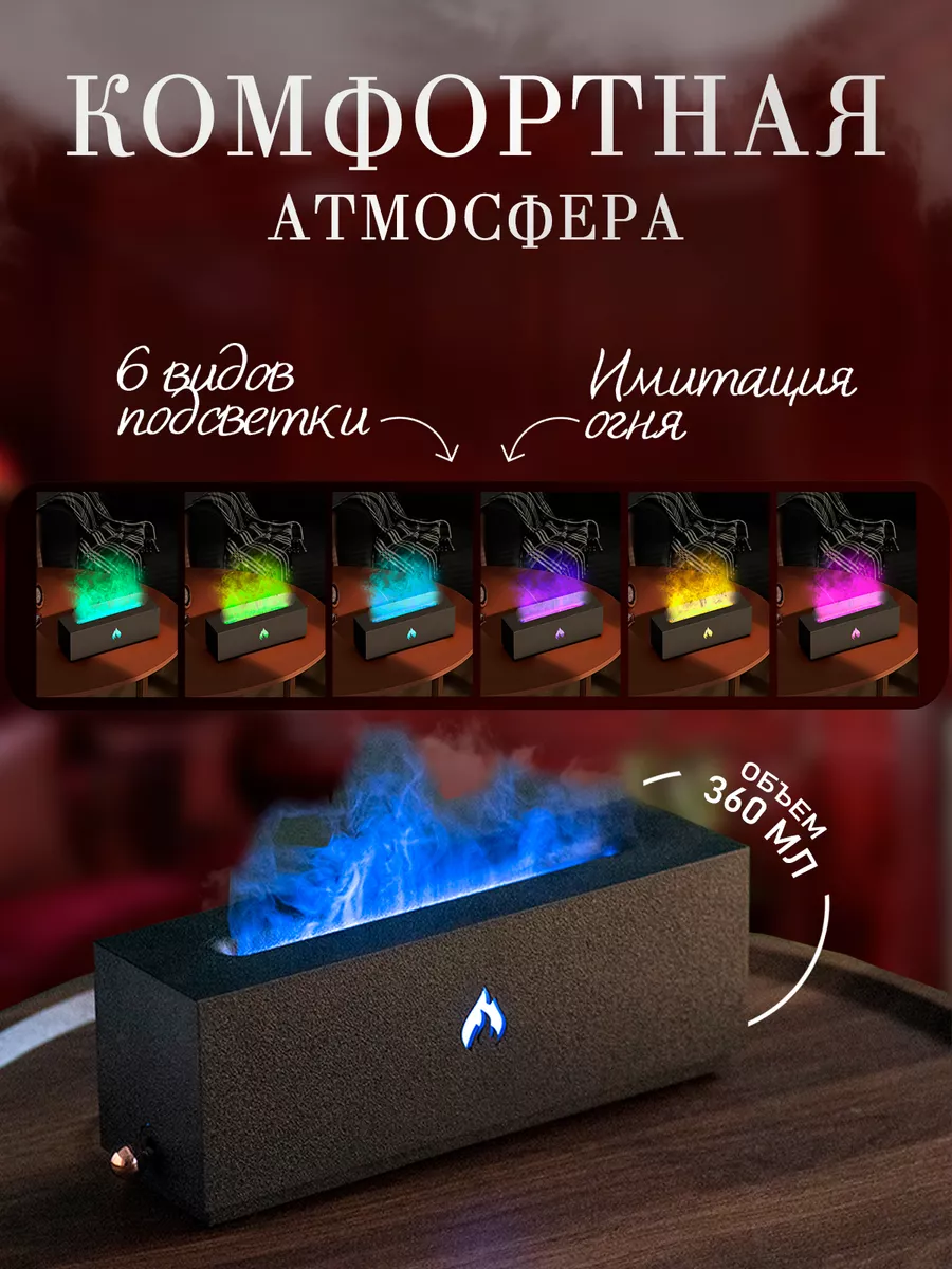 Увлажнитель воздуха, настольный с разноцветной подсветкой/аромадиффузор/Мини увлажнитель воздуха/Ночник/для дома, черный интересное: