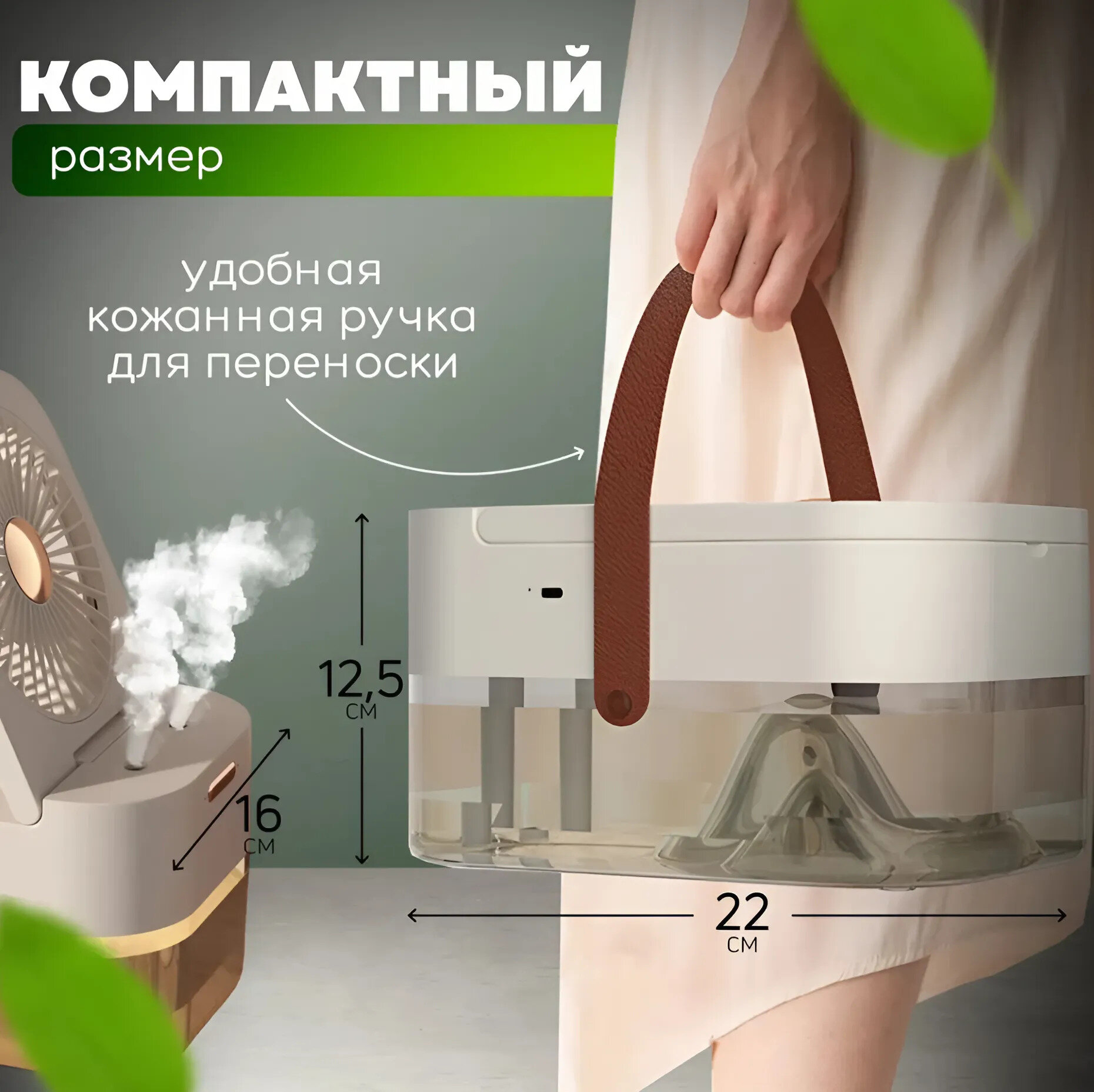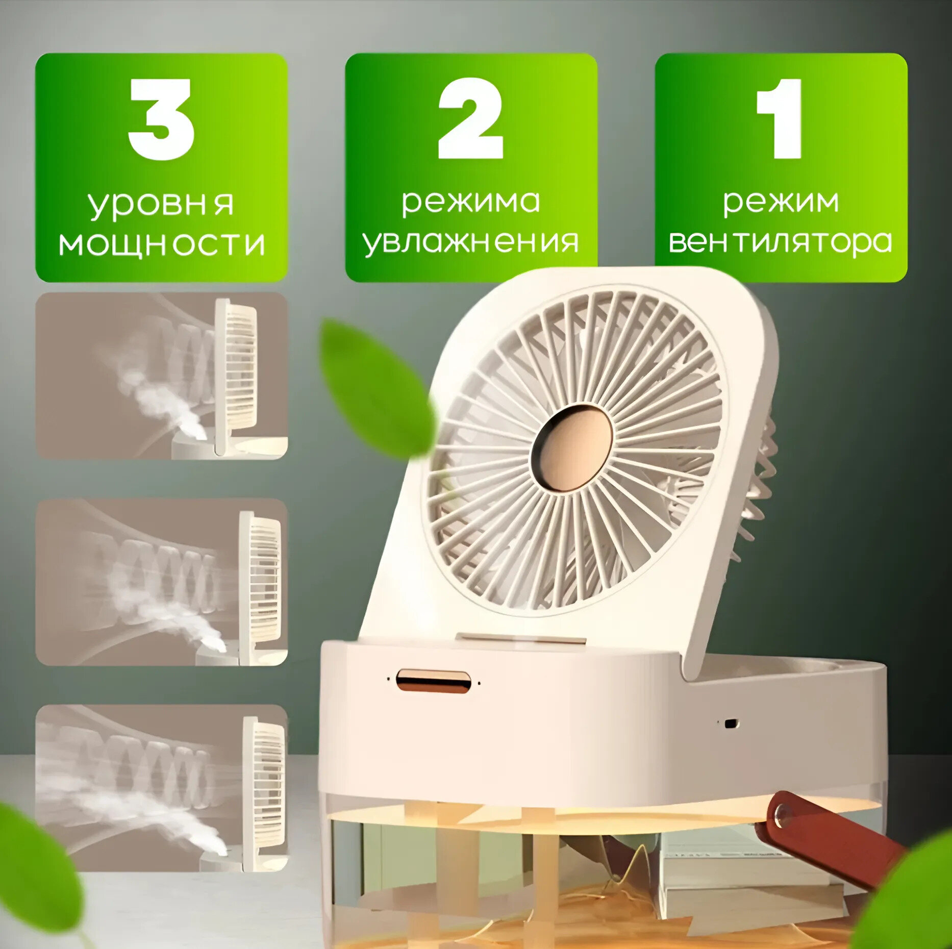 Портативный мини вентилятор-кондиционер, увлажнитель, очиститель и охладитель воздуха 3в1, зеленый