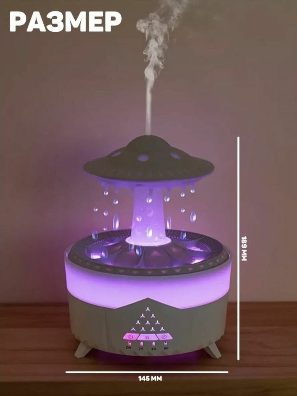 Ночник аромадиффузор увлажнитель воздуха Гриб с эффектом дождя и пультом. интересное: