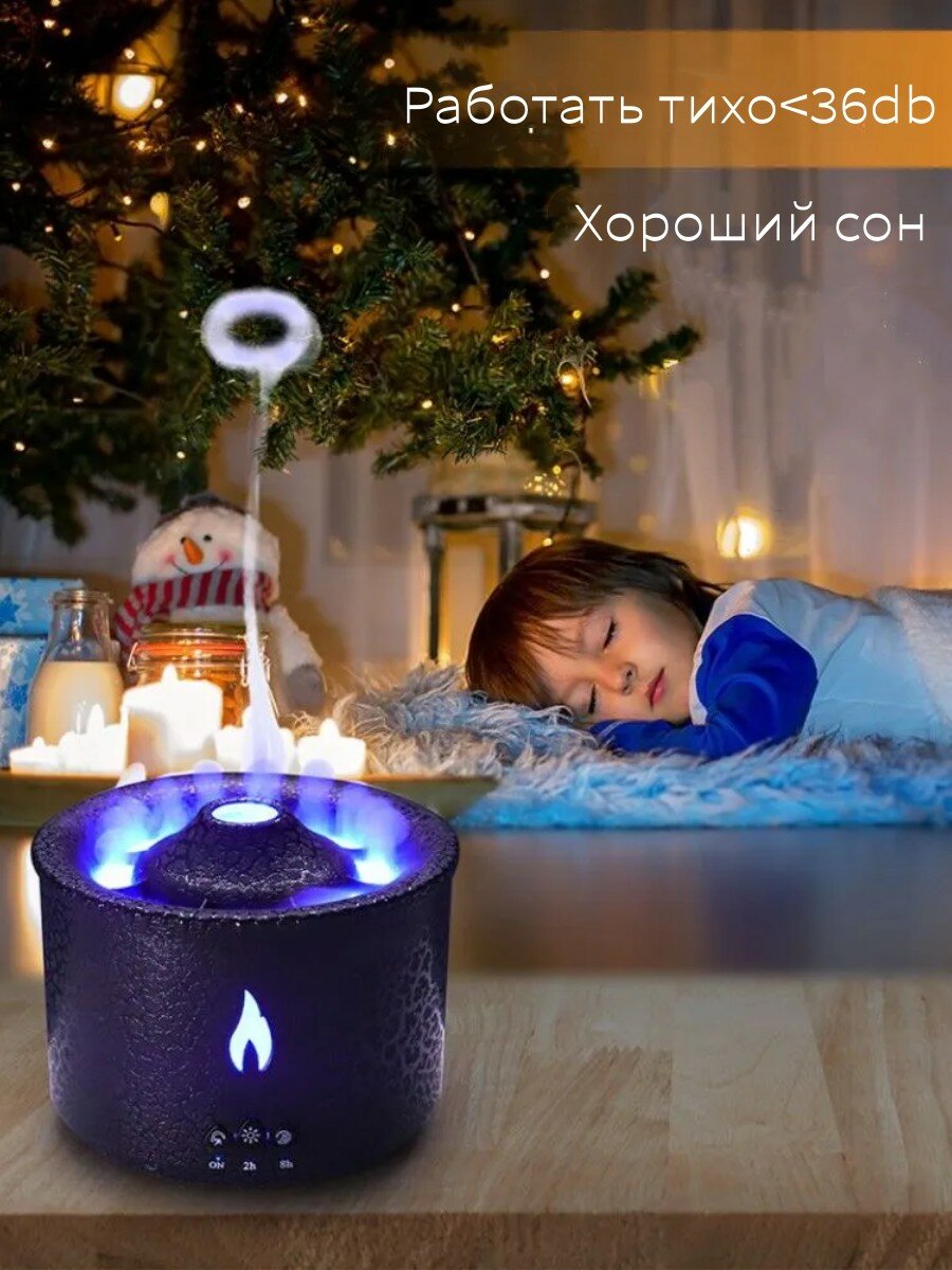 Купить Увлажнитель воздуха для дома настольный и напольный, ультразвуковой, портативный с подсветкой. Аромадиффузор для эфирных масел, с эффектом дыма Вулкан
