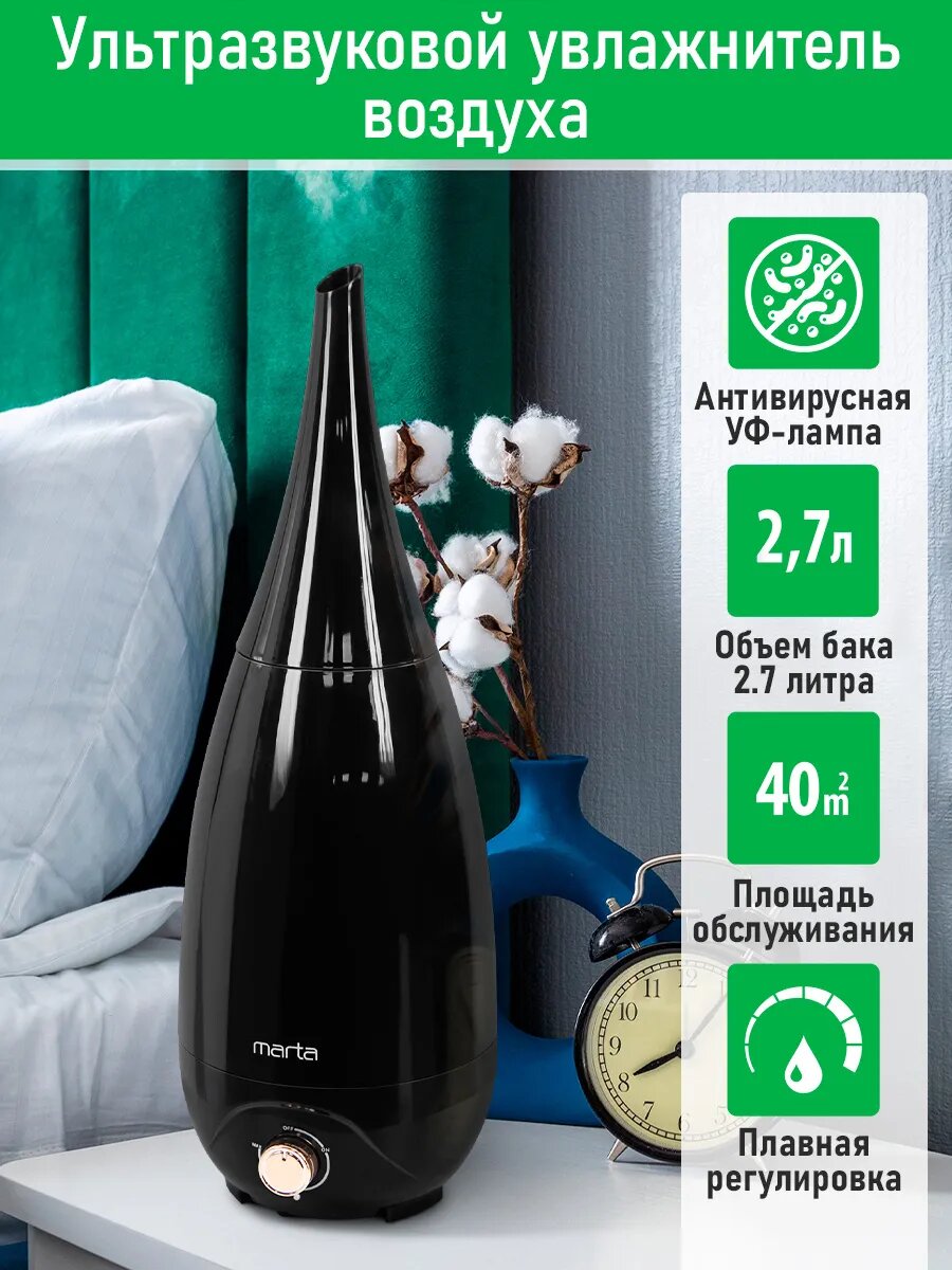 Увлажнитель воздуха ультразвуковой MARTA MT-HF4706A антивирусная УФ - лампа черный/медь интересное: