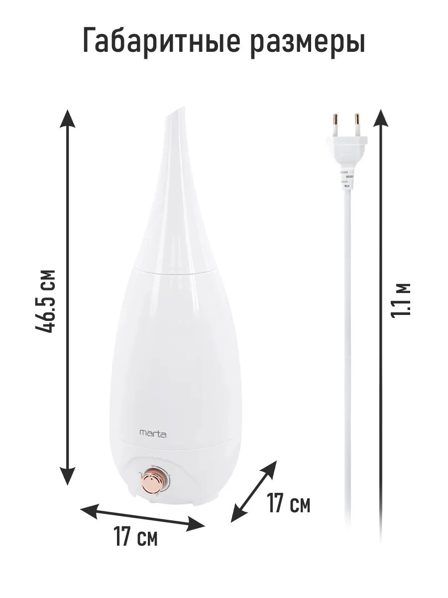 Увлажнитель воздуха ультразвуковой MARTA MT-HF4706B белый/медь интересное: