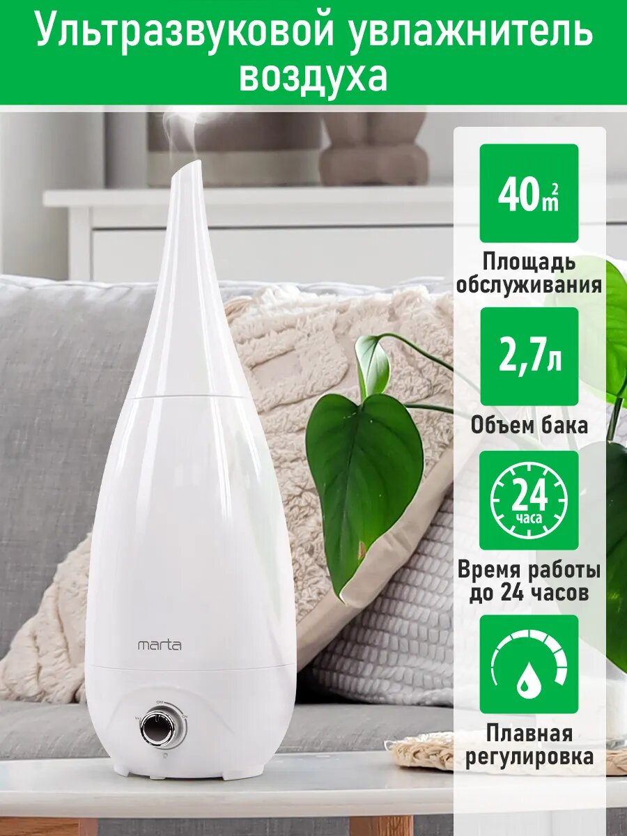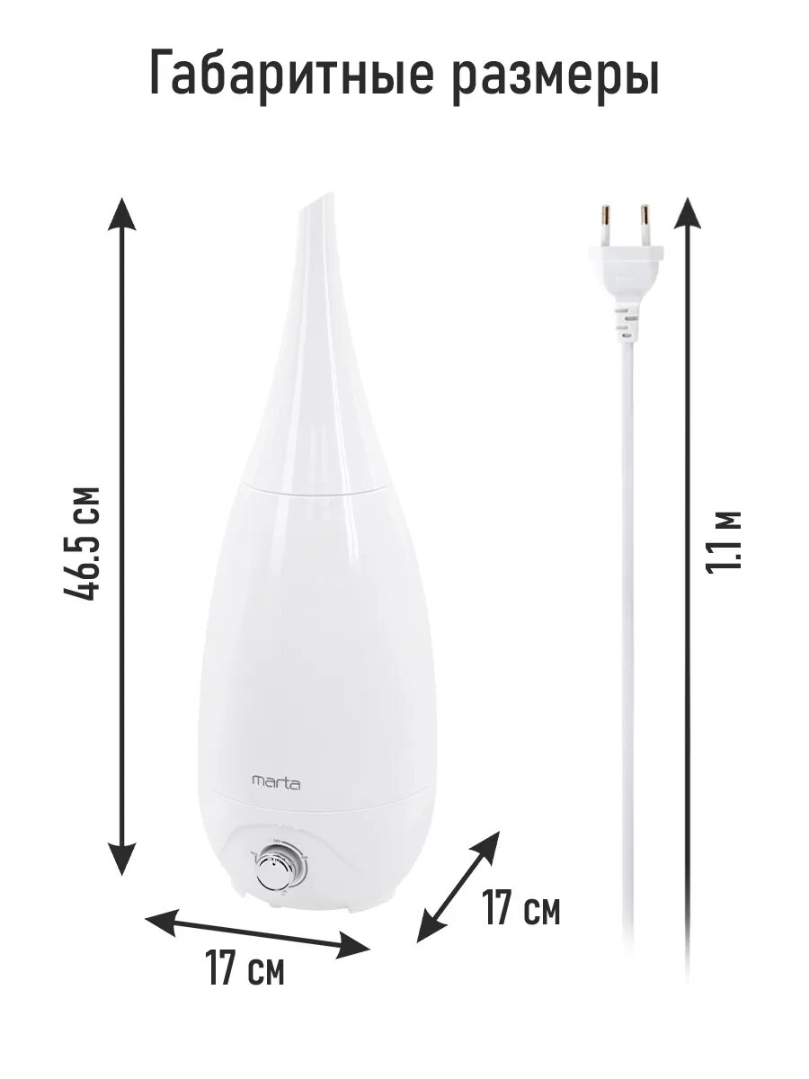 Увлажнитель воздуха ультразвуковой MARTA MT-HF4706B белый/серебро интересное: