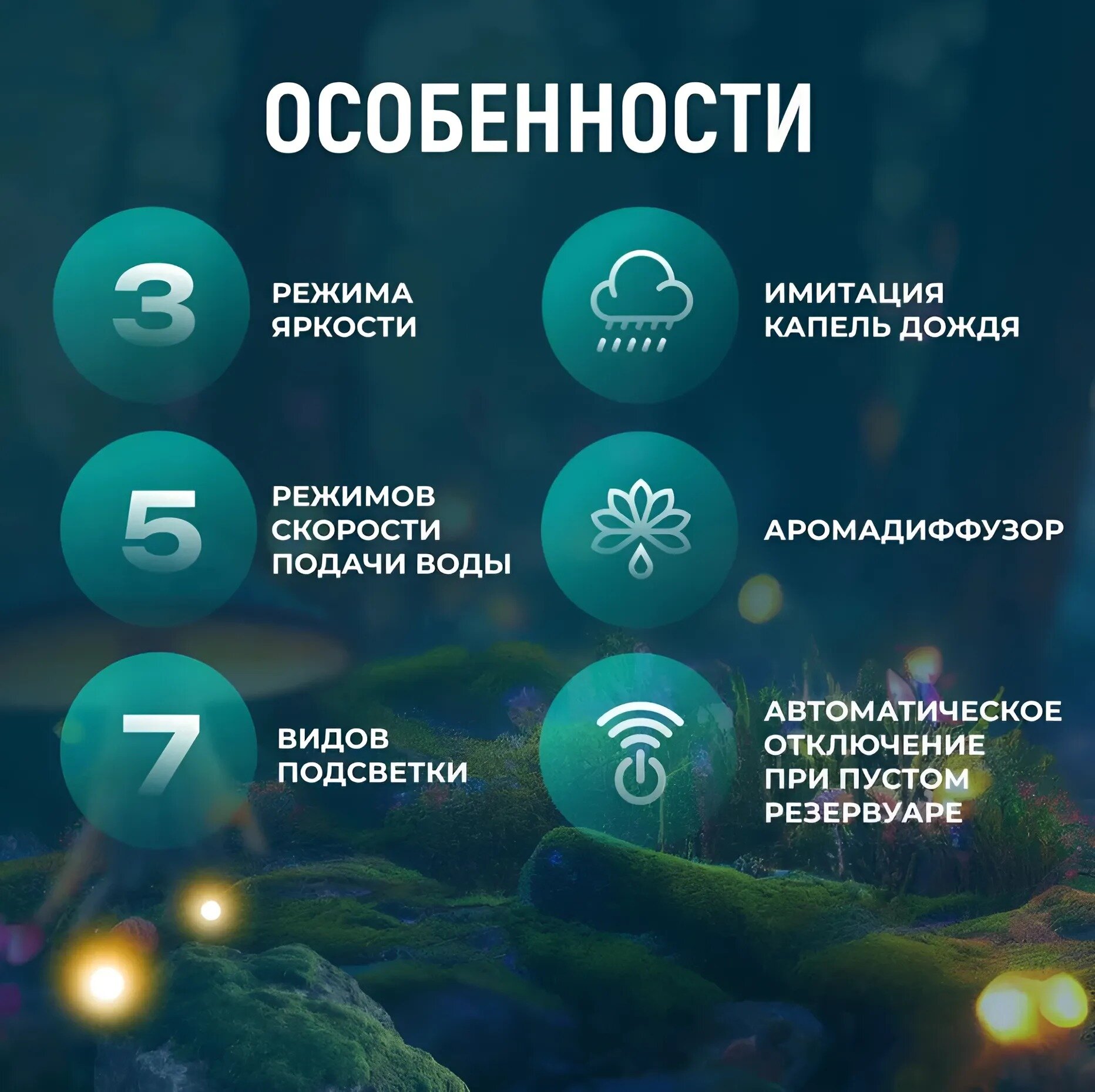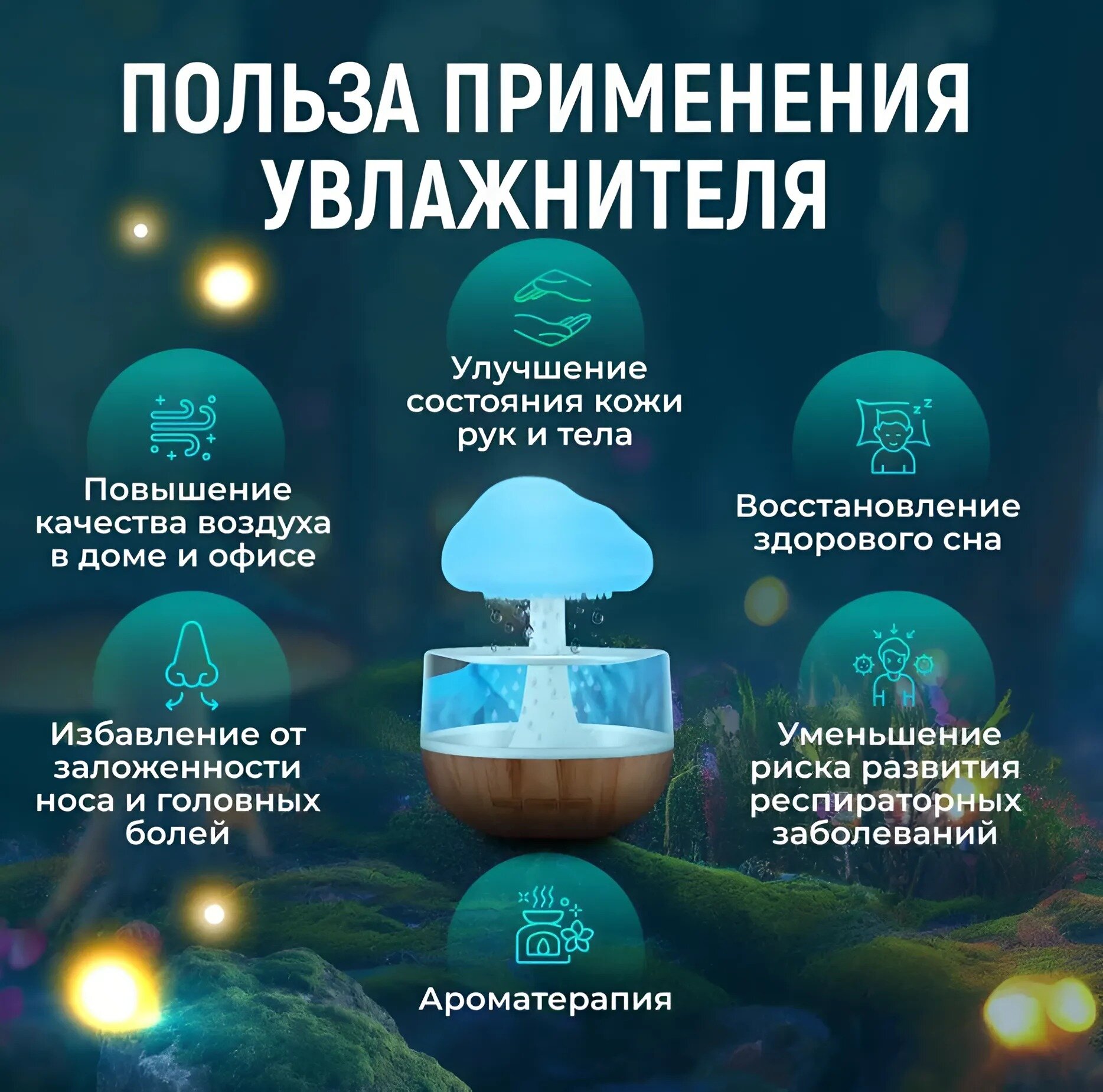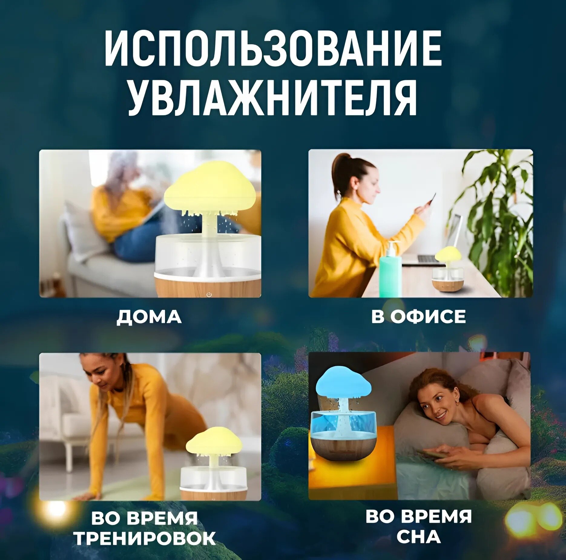 Увлажнитель-аромадиффузор "Гриб" с функцией ночника и эффектом дождя интересное: