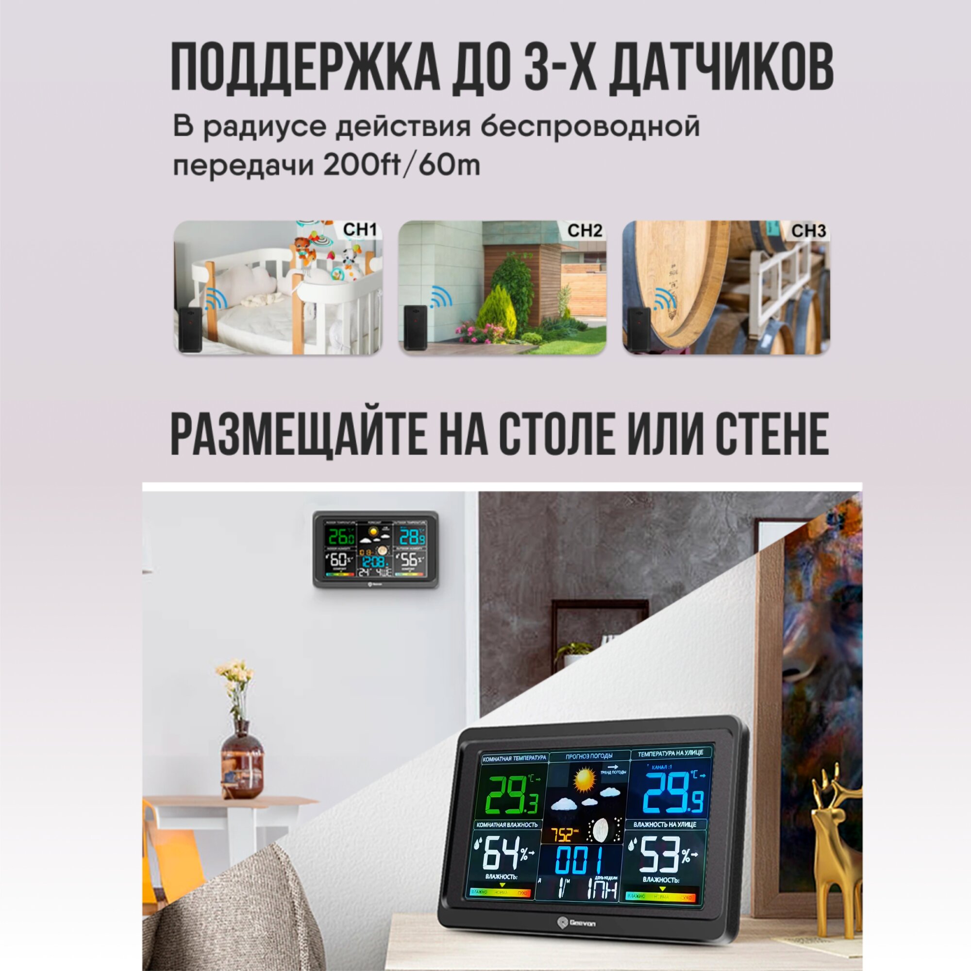 Метеостанция GEEVON, с беспроводным выносным датчиком, для дома интересное:
