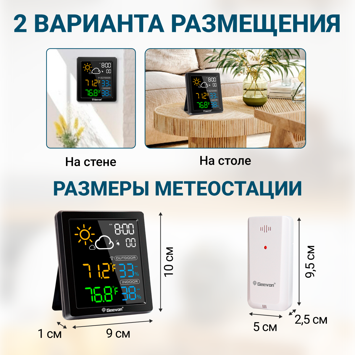 Метеостанция GEEVON, с выносным беспроводным датчиком, будильник, часы интересное: