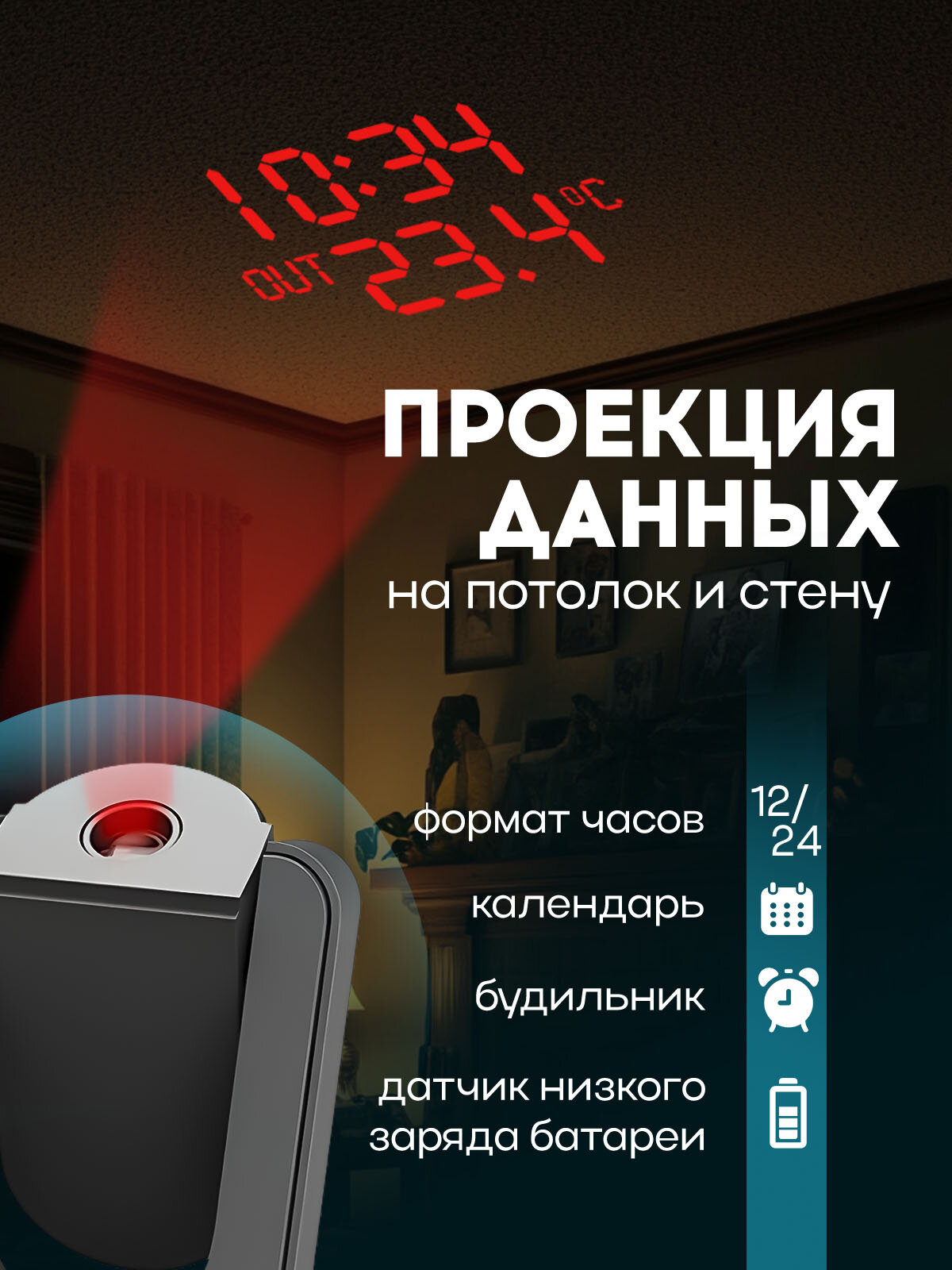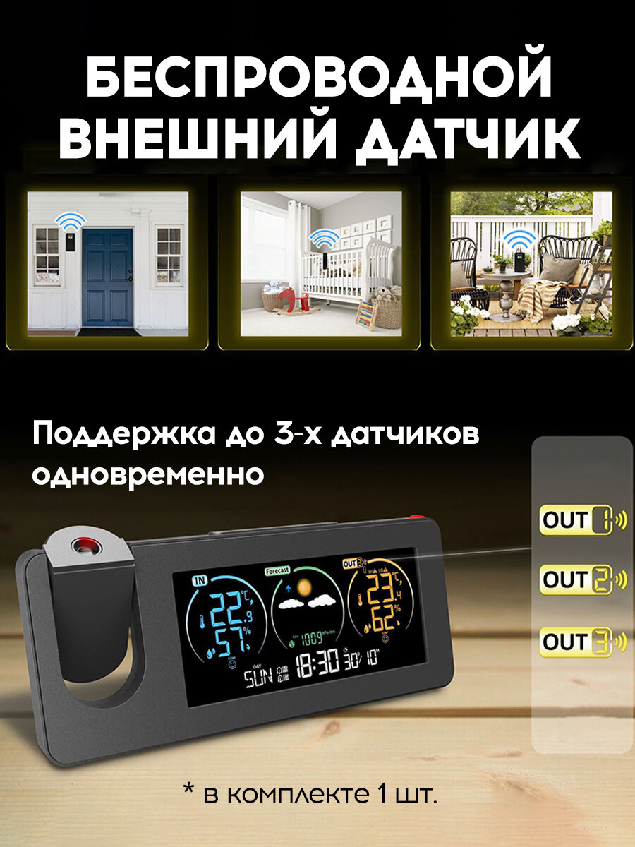 Метеостанция с проекцией и беспроводным внешним датчиком / термометр гигрометр барометр интересное: