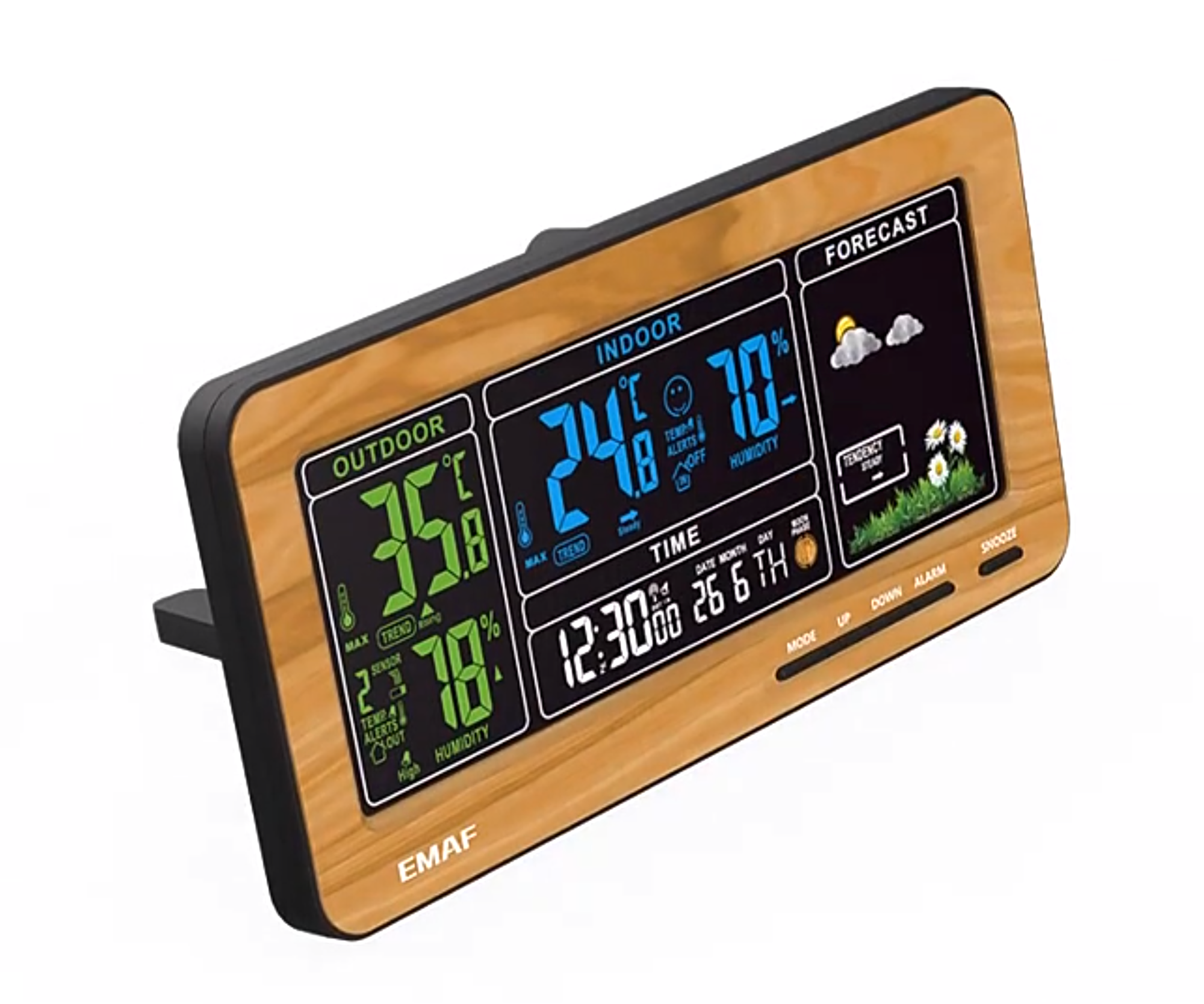 Метеостанция Emaf, с беспроводным выносным датчиком, коричневая интересное:
