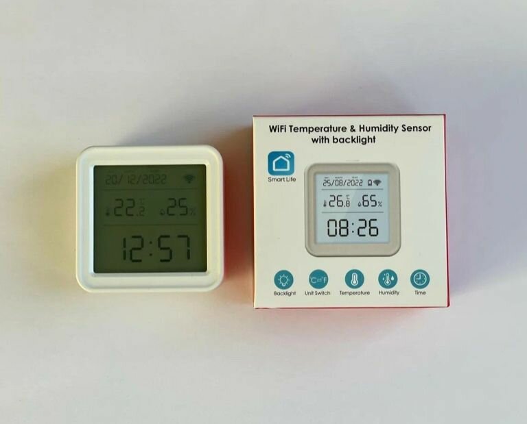 Купить Датчик температуры и влажности. С Алисой через Smart Life. Гигрометр. WiFi.+Батарейки. Дисплей черно-белый. Календарь