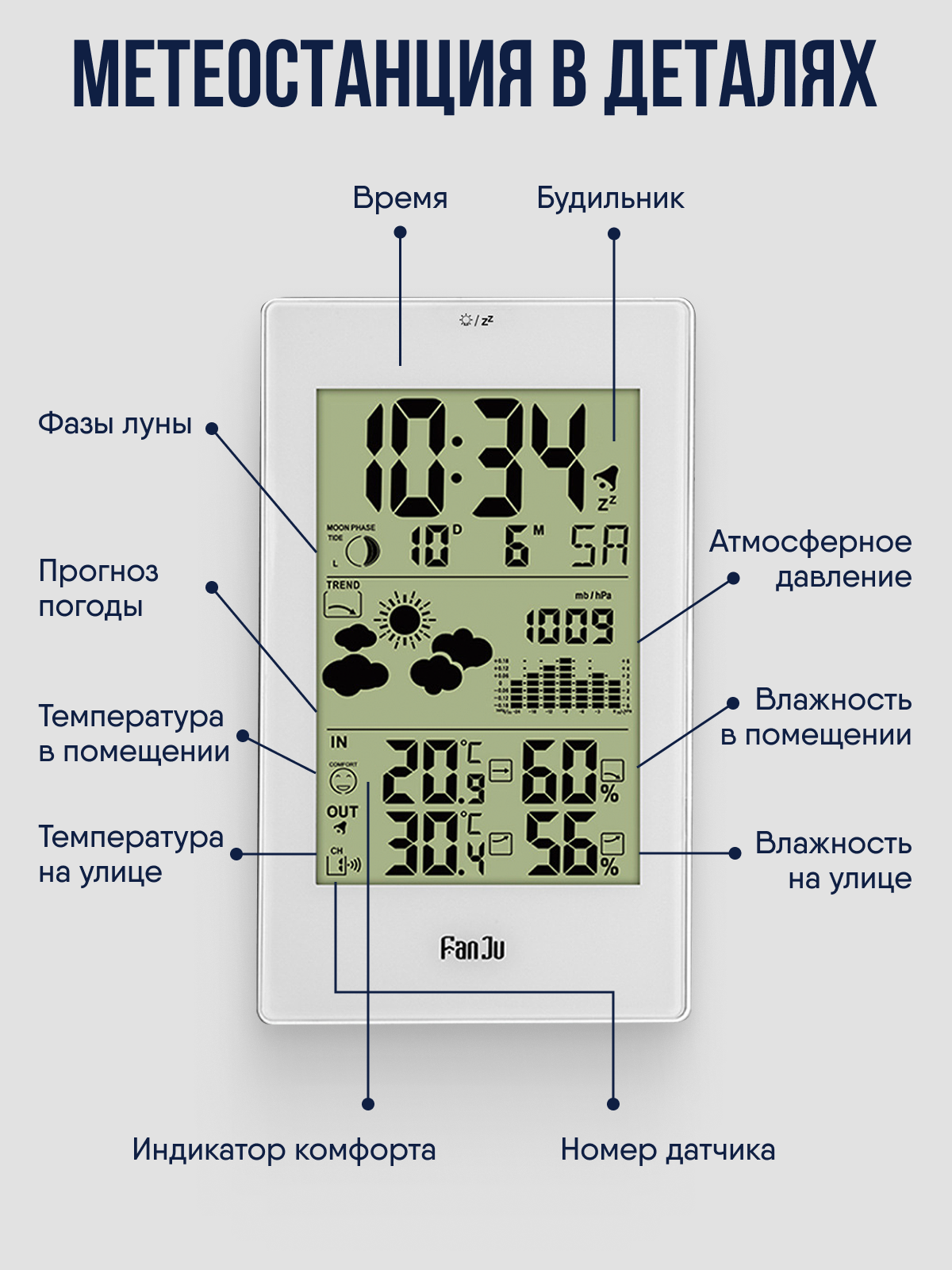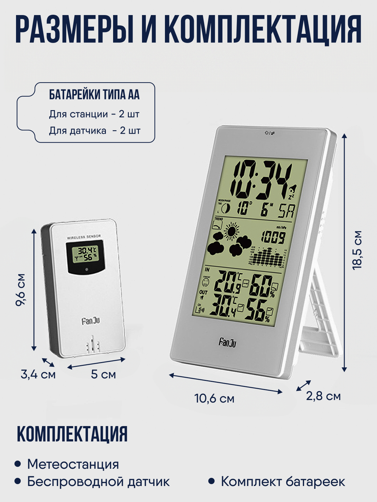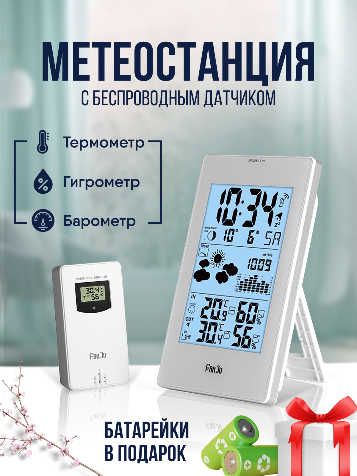 | Дополнительная информация | Батарейки для датчика и станции в подарок. |