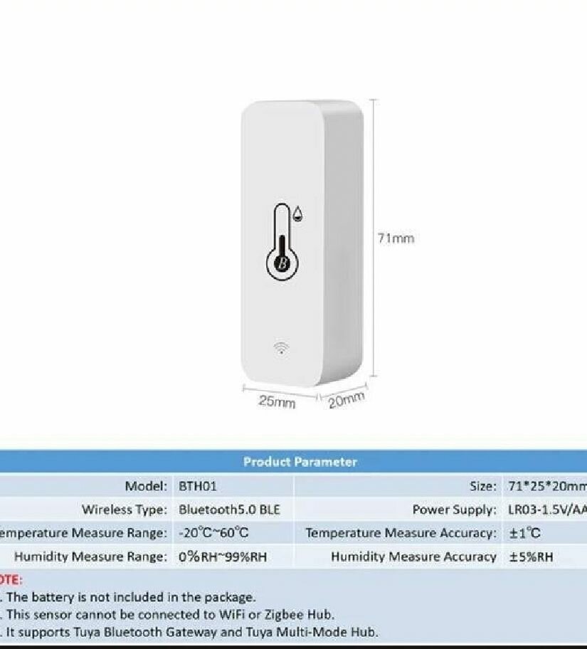 Ниже Вы можете прочитать отзывы на Умный Блютус(НЕ WiFi) датчик температуры и влажности. 2шт. Блютус . TUYA . SMART LIFE, ознакомится с подробными характеристиками, посмотреть интересные обзоры и фотографии на Умный Блютус(НЕ WiFi) датчик температуры и влажности. 2шт. Блютус . TUYA . SMART LIFE.