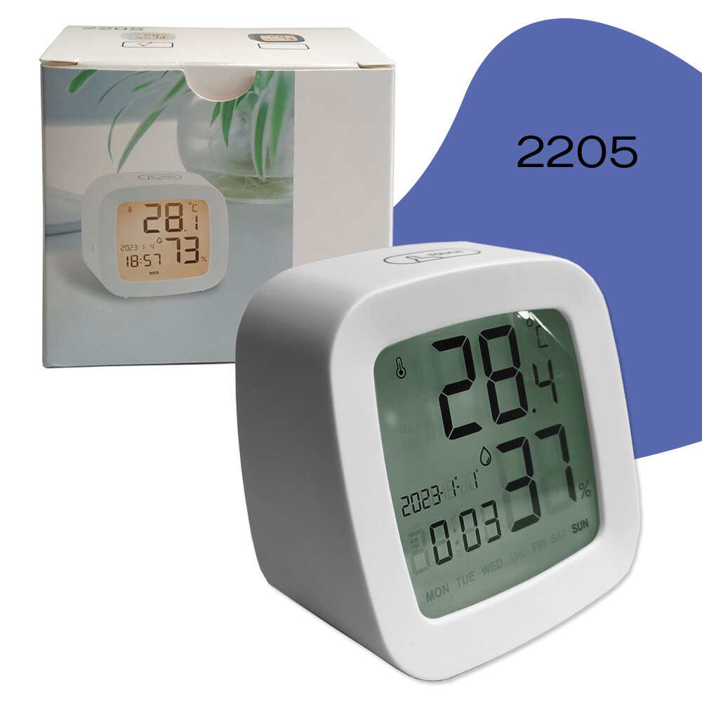 Купить Часы термометр-гигрометр № 2205 настольные электронные, домашняя метеостанция, белые