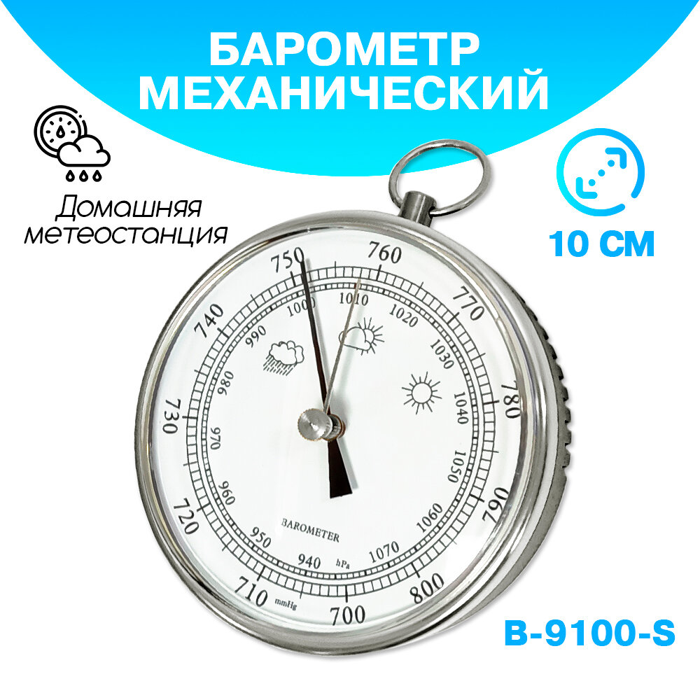 Барометр анероид B 9100 S бытовой, диаметр 100 мм, цвет - серебристый интересное: