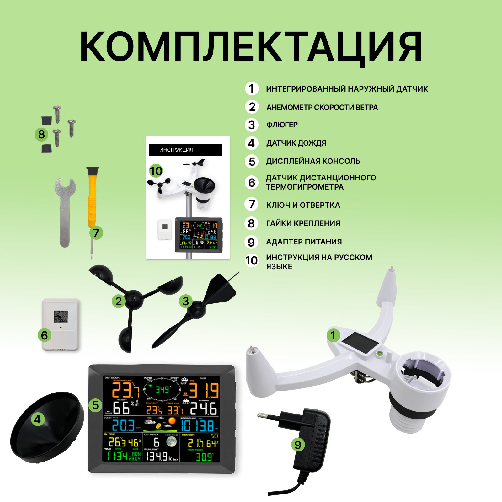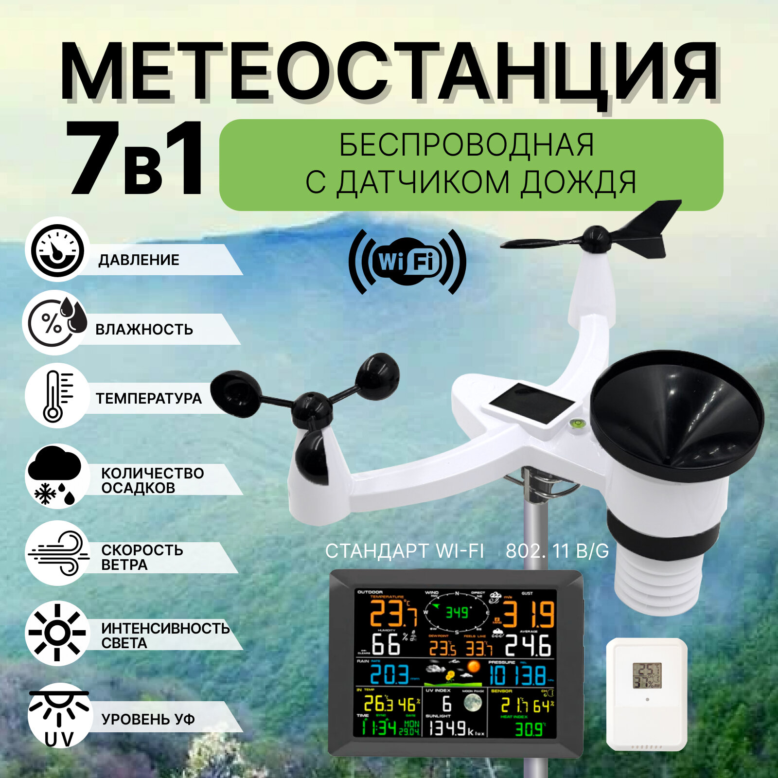 Метеостанция беспроводная профессиональная 7в1, погодная станция дальность 1500м, свет и уровень УФ