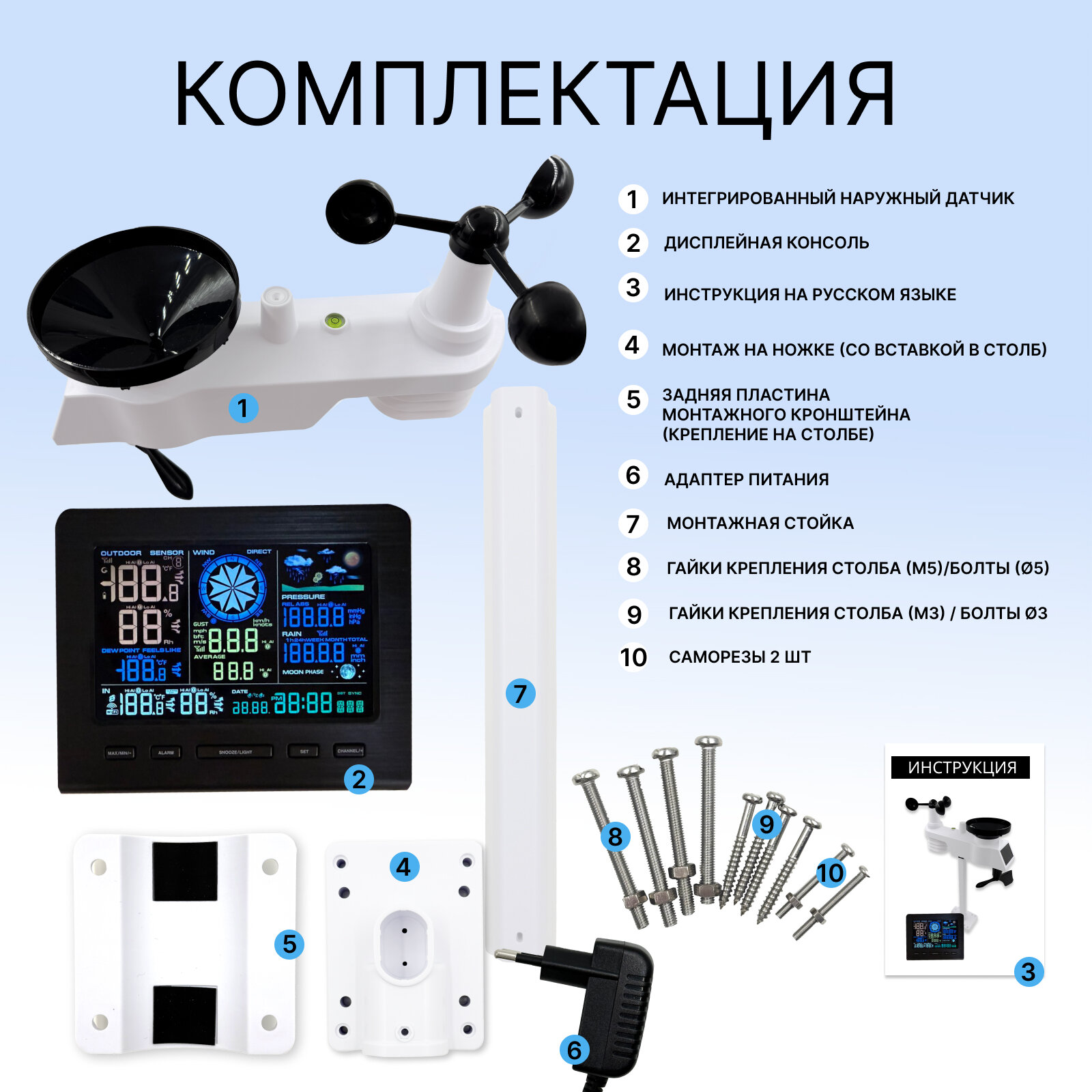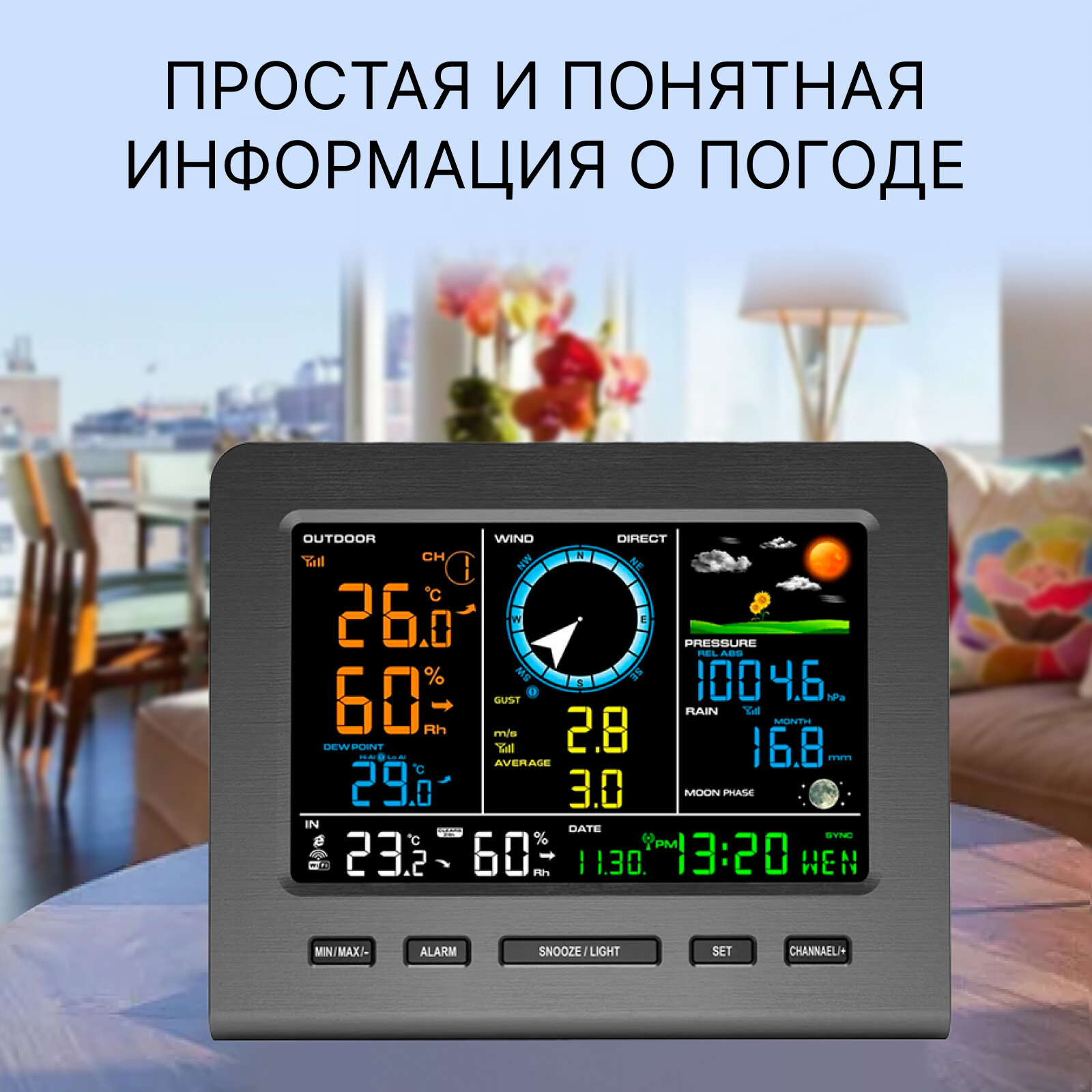 Метеостанция беспроводная 5в1, погодная станция домашняя с датчиком дождя интересное: