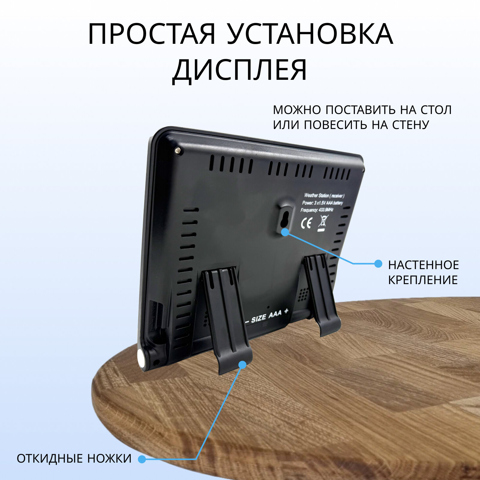 | Дополнительные функции | будильник / прогноз погоды / часы / Звуковая индикация / Крепление на стену / Сохранение температурных значений |