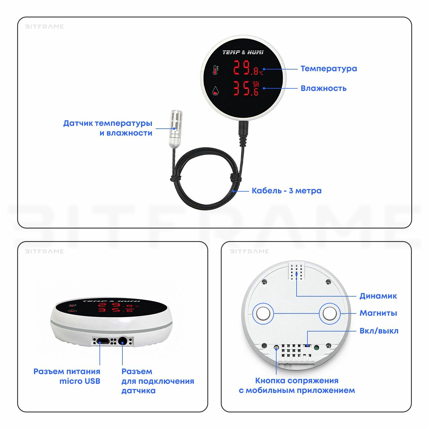 | Комплектация | Датчик, коробка, инструкция, датчик 3м., блок питания, магниты, двусторонний скотч. |
