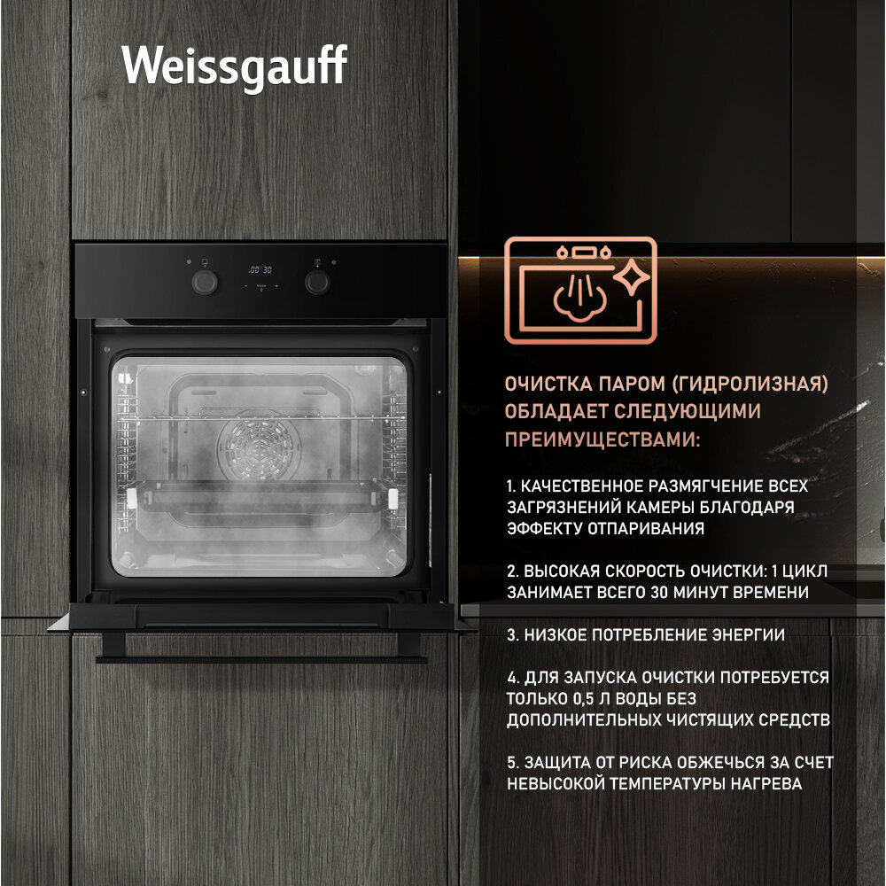 Духовой шкаф Weissgauff EOV 29 PDBV, объем 69 литров, класс энергопотребления А, эмаль SMART CLEAN интересное: