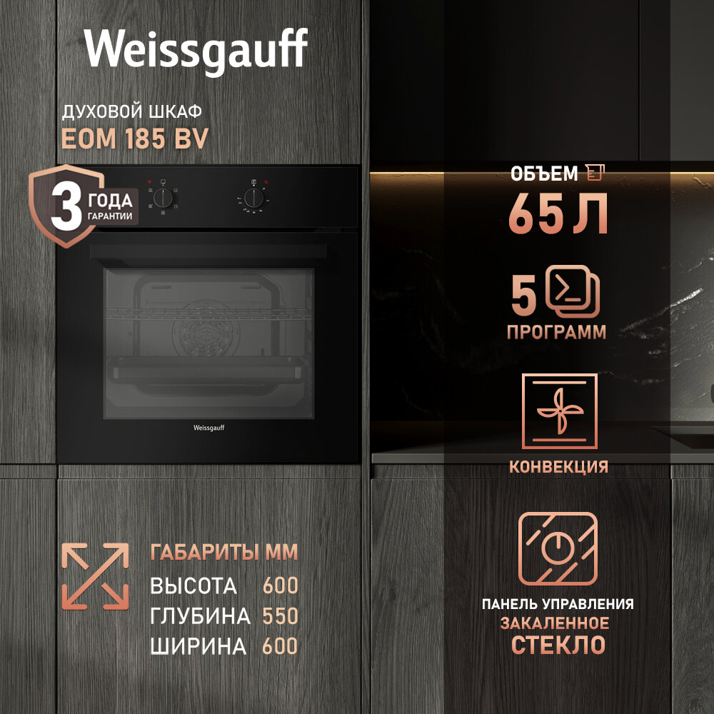 Купить Weissgauff духовой шкаф EOM 185 BV, Конвекция, Фасад из закалённого стекла, Объем 65 литров, 5 функций