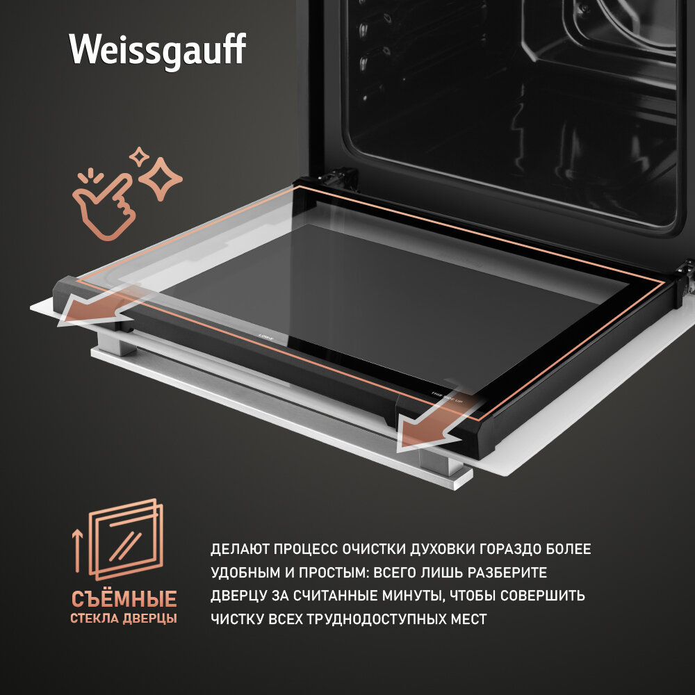 Weissgauff духовой шкаф EOM 185 WV, Конвекция, Фасад из закаленного стекла, Объем 65 литров, 5 функций, 3 года гарантии интересное: