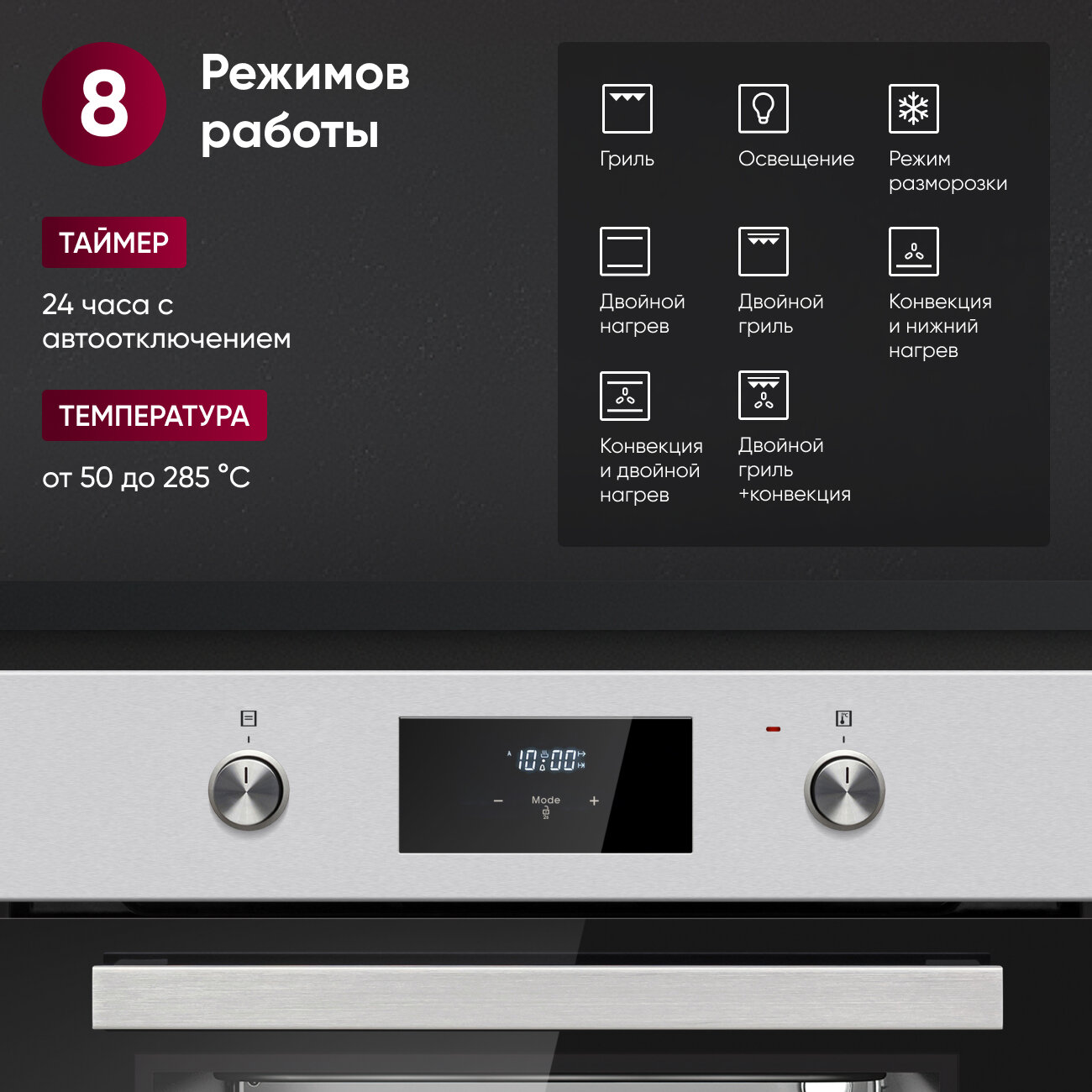 Встраиваемый духовой шкаф Gressel U6EB68005 60см, 7 режимов, 60л, конвекция, двойное стекло, конвекция, гриль, таймер