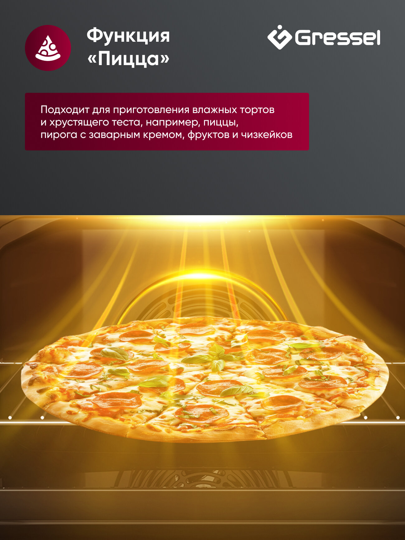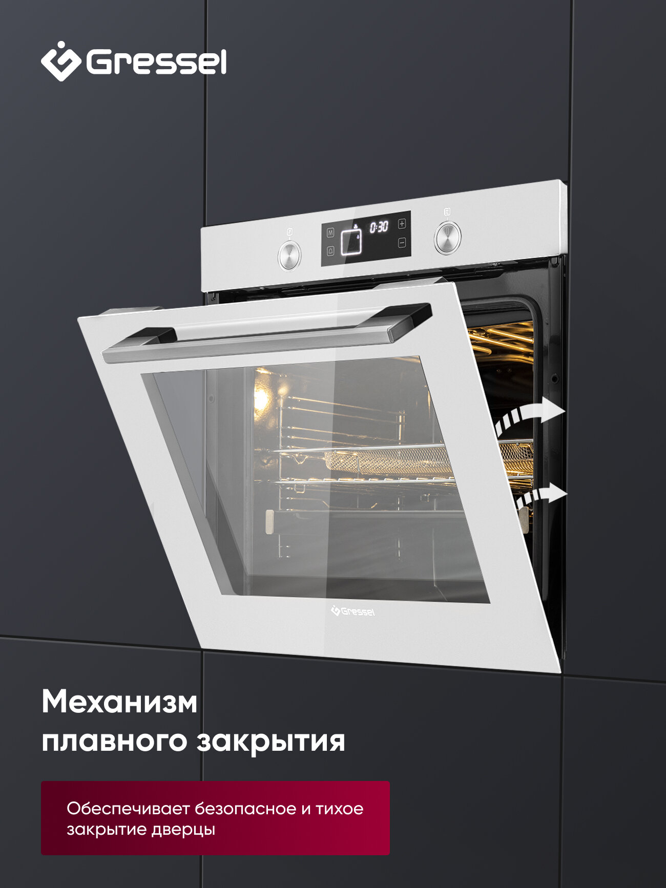 Встраиваемый духовой шкаф Gressel U6ES69110, 60см, XXL, 75л, 9 режимов работы, 3D конвекция, режим разморозки + противень Wellfry