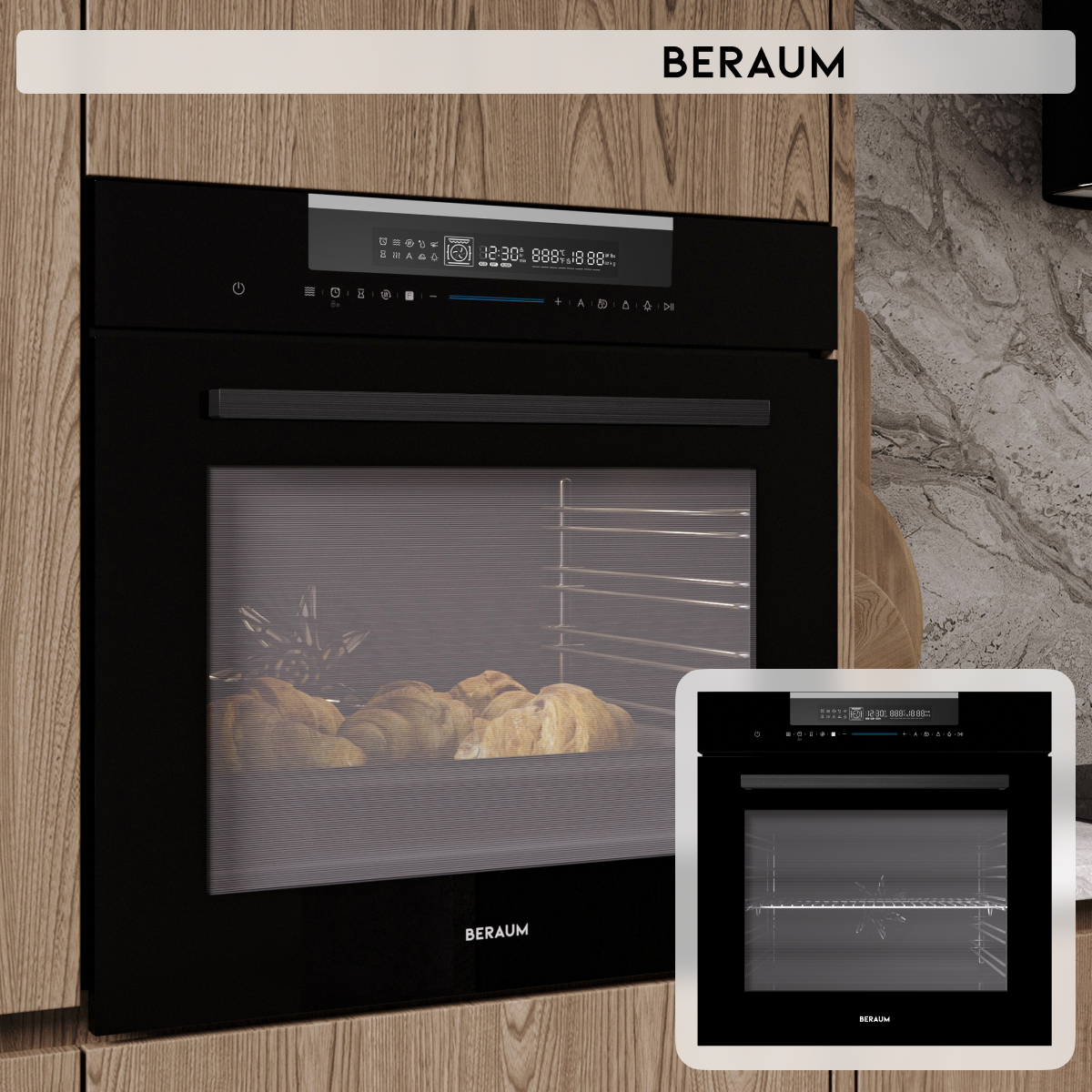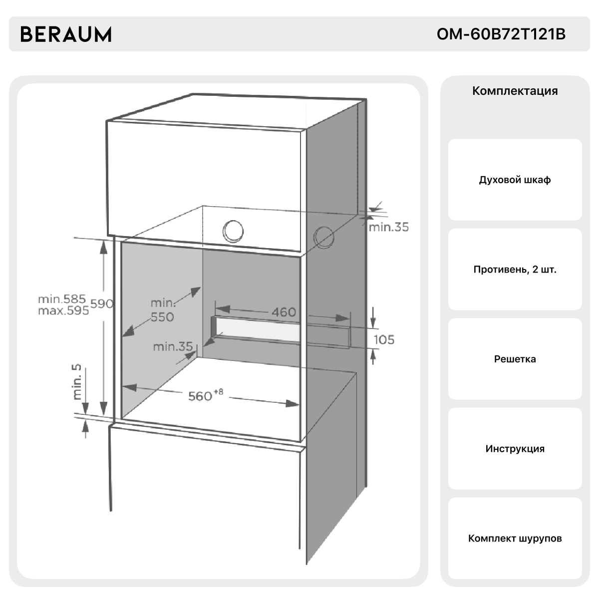 Электрический духовой шкаф Beraum OM-60B72T121B с функцией СВЧ, 60 см интересное: