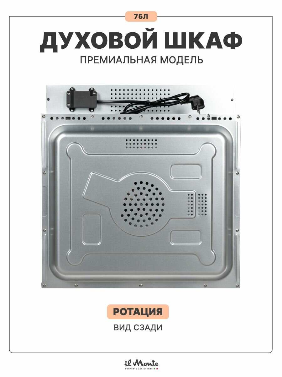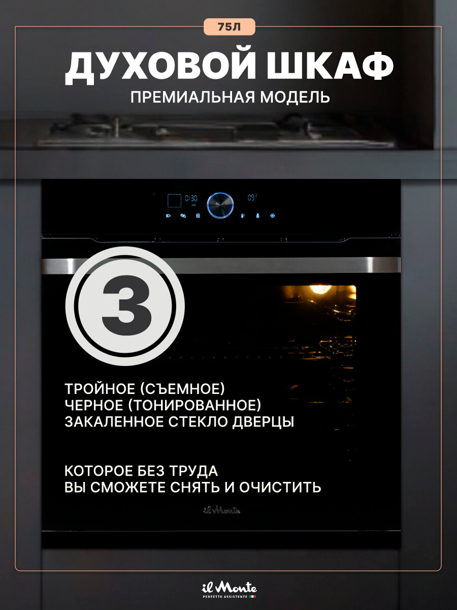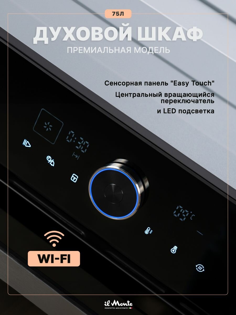 Духовой шкаф электрический встраиваемый, 75 л, Тройное стекло, Управление Wi-Fi, 10 режимов, Конвекция, Разморозка, il Monte BO-77 интересное: