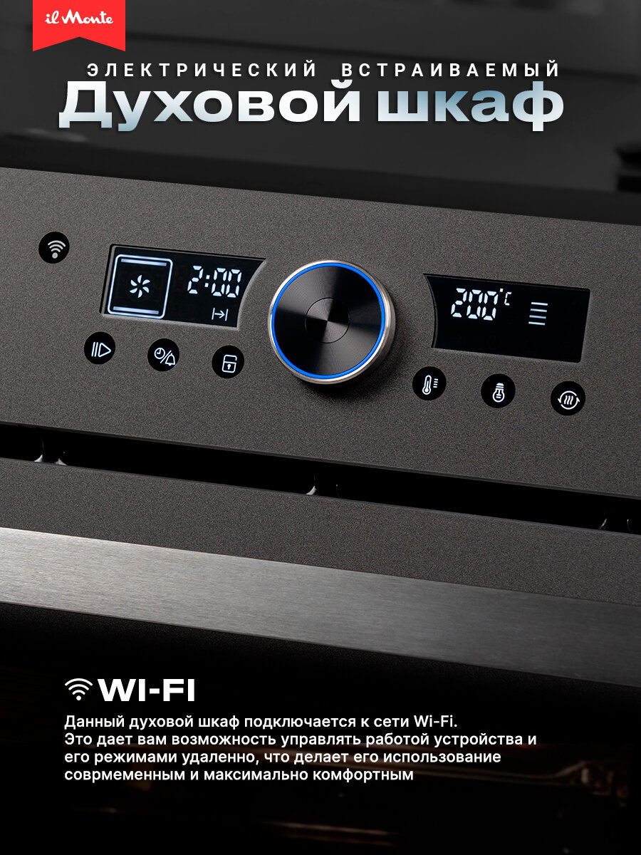 Духовой шкаф электрический встраиваемый, Матовое стекло, Wi-Fi, Камень для пиццы, Премиальная серия il Monte, BO-77 интересное: