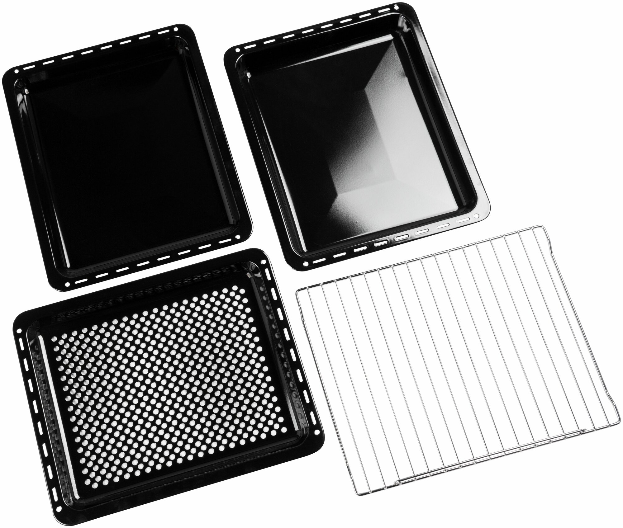 | Подробная комплектация | Комплектация: Хромированная решетка-гриль, 1 шт.; Прямоугольный эмалированный противень, 2 шт.; Прямоугольный эмалированный противень-гриль для сушки (с отверстиями по всей площади), 1 шт.; Инструкция с гарантийным талоном на последних страницах (не обязательно для заполнения по правилам интернет-торговли); |