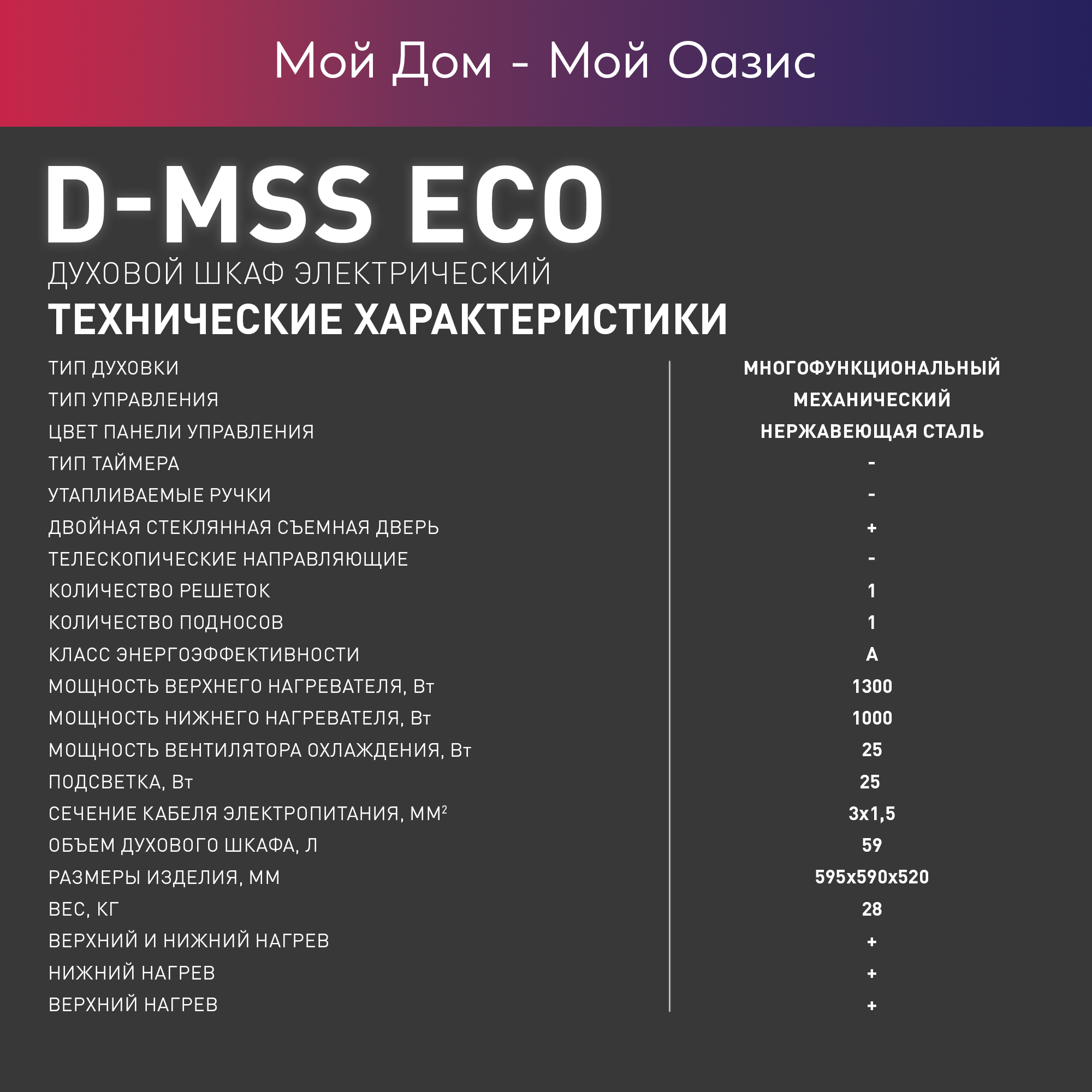 Духовой шкаф электрический встраиваемый 60 см серия ECO "making Oasis everywhere" D-MSS интересное: