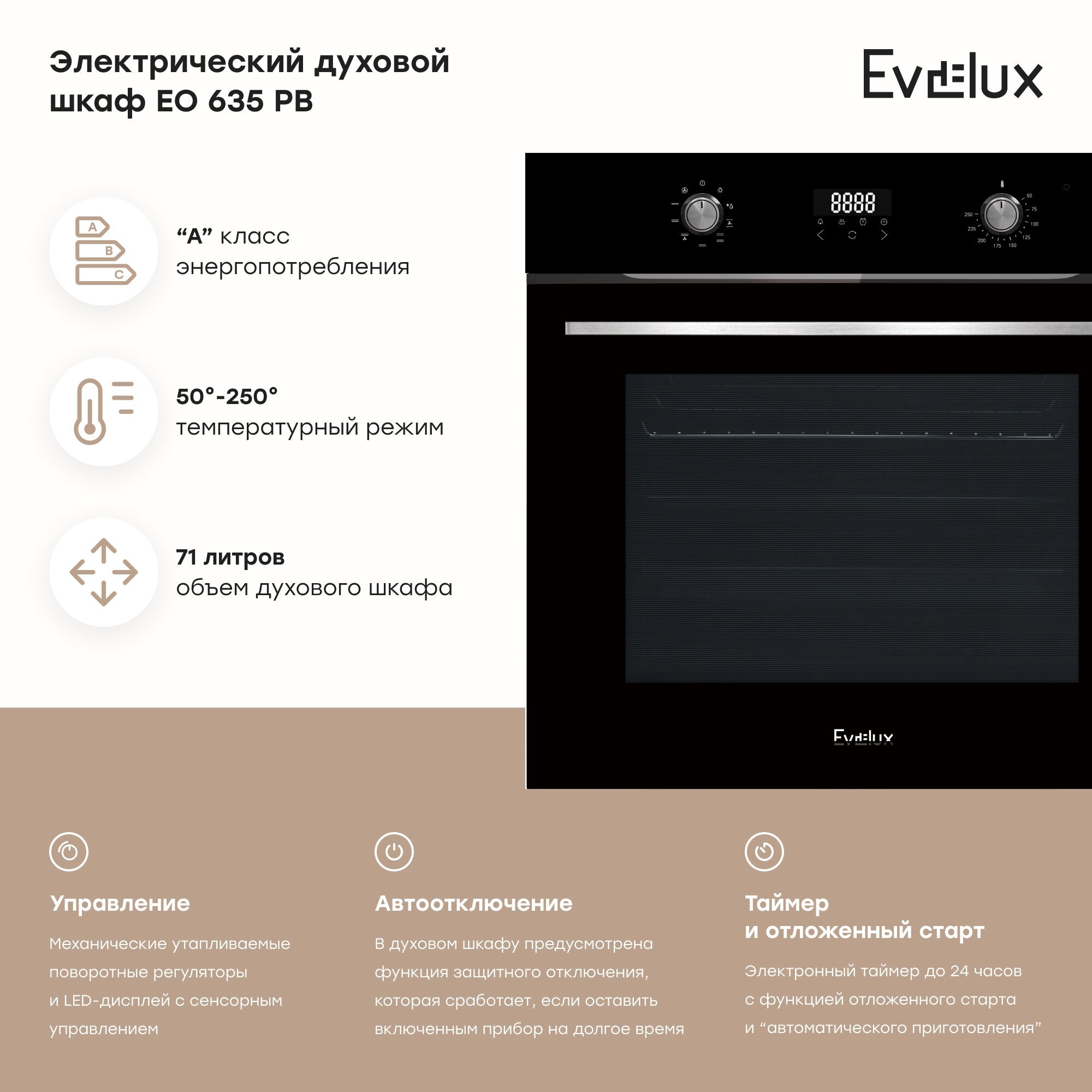 Духовой шкаф Evelux EO 635 PB электрический, ширина 60 см, цвет черный интересное: