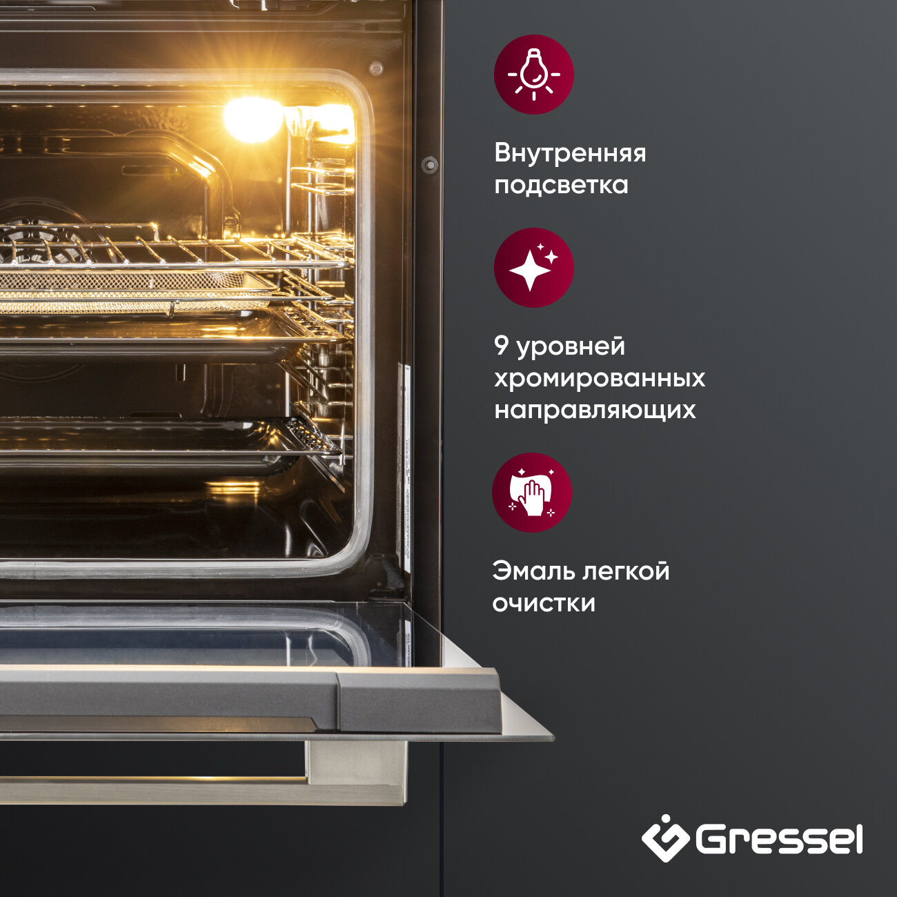 Встраиваемый духовой шкаф Gressel U6ES69000 60 см, 10 режимов, двойной гриль, разморозка, конвекция