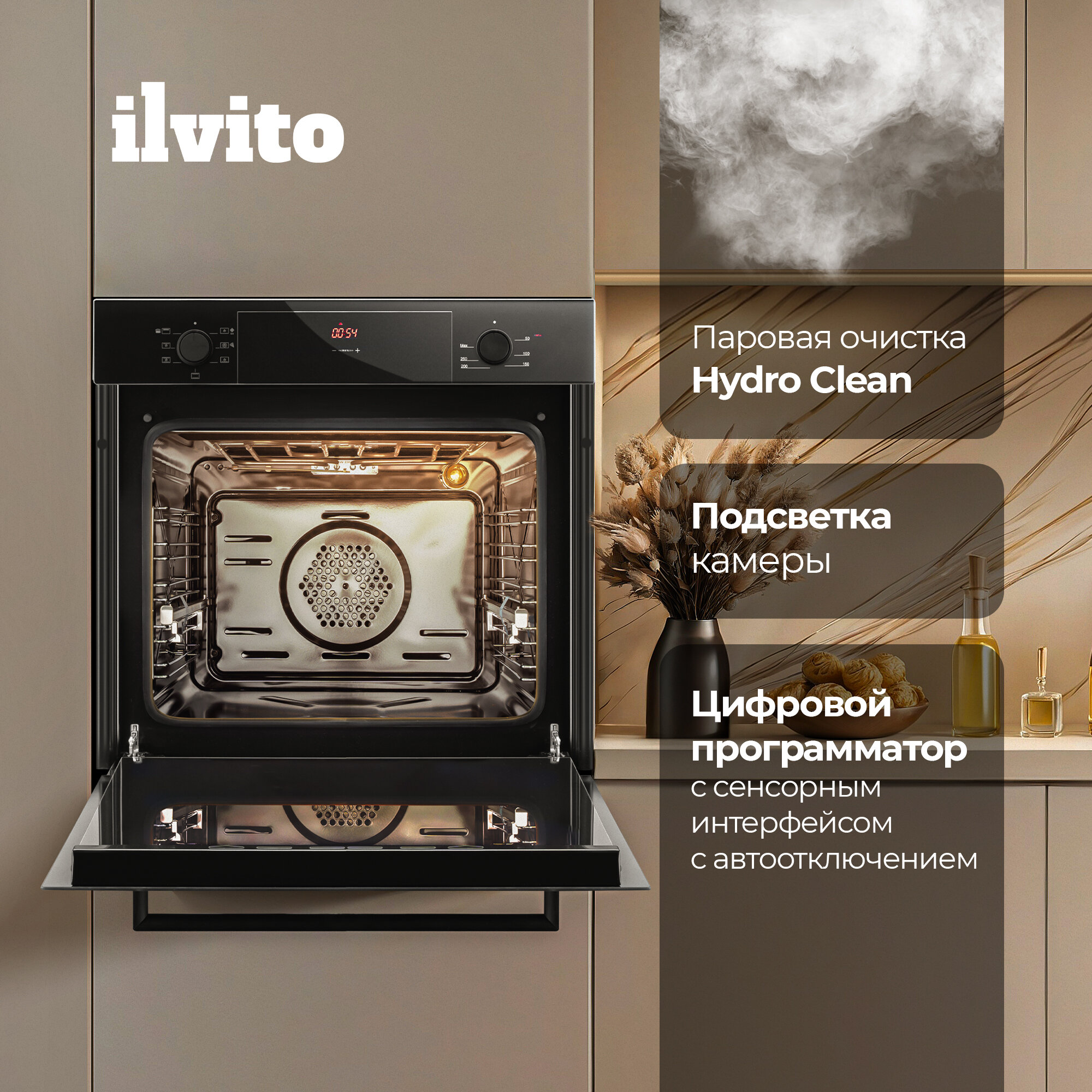 Электрический духовой шкаф ILVITO IFE DALIA NB 722, 60 см, сталь, 8 режимов, конвекция, гриль, эмаль легкой очистки интересное: