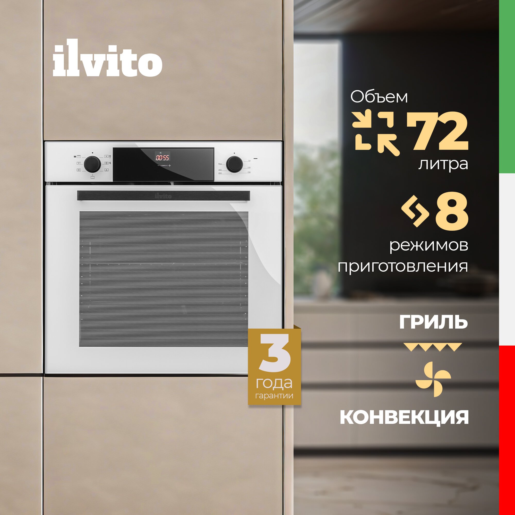 Электрический духовой шкаф ILVITO IFE DALIA BB 722 , 60 см, белый, 8 режимов, конвекция, гриль, эмаль легкой очистки интересное: