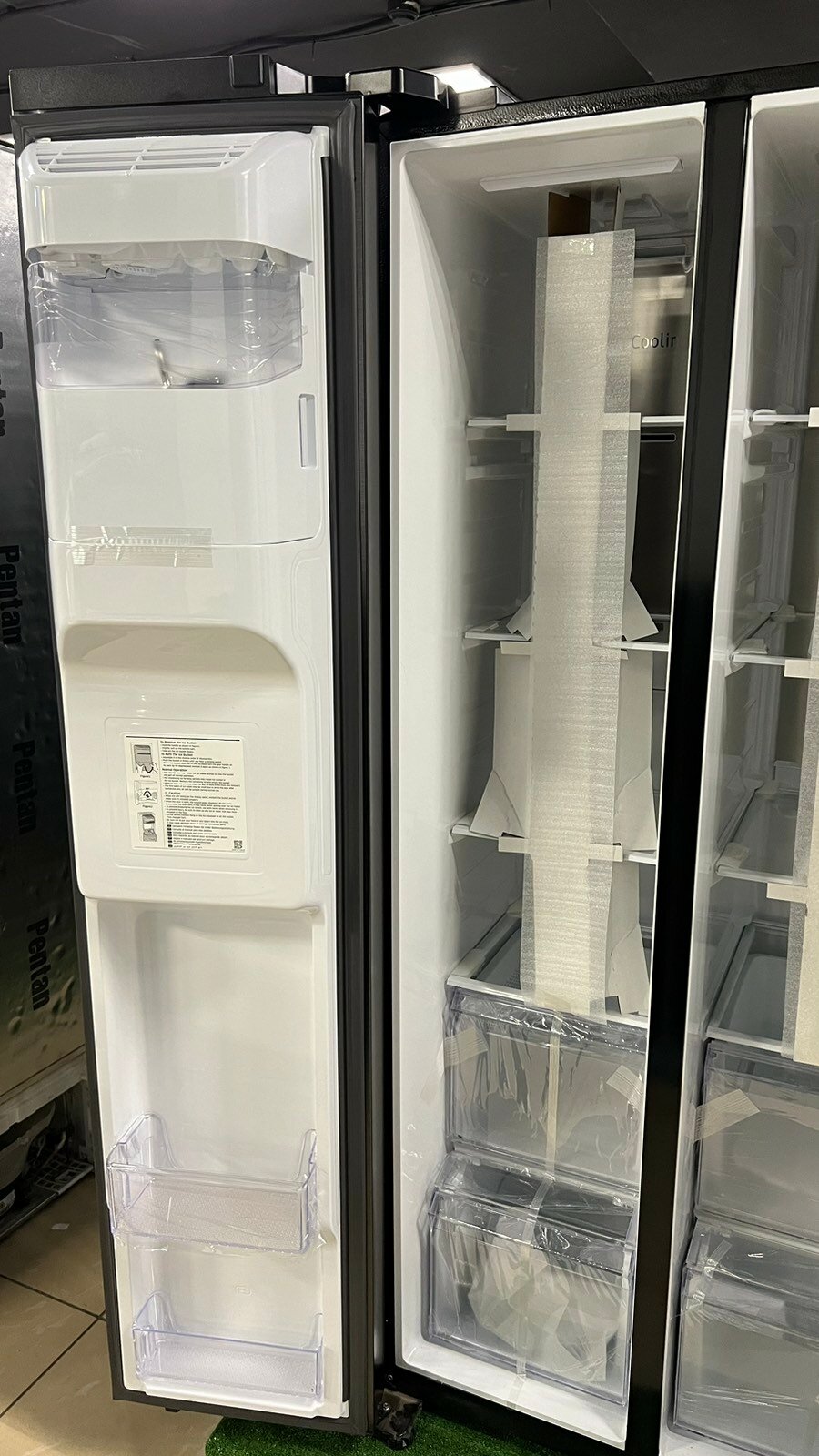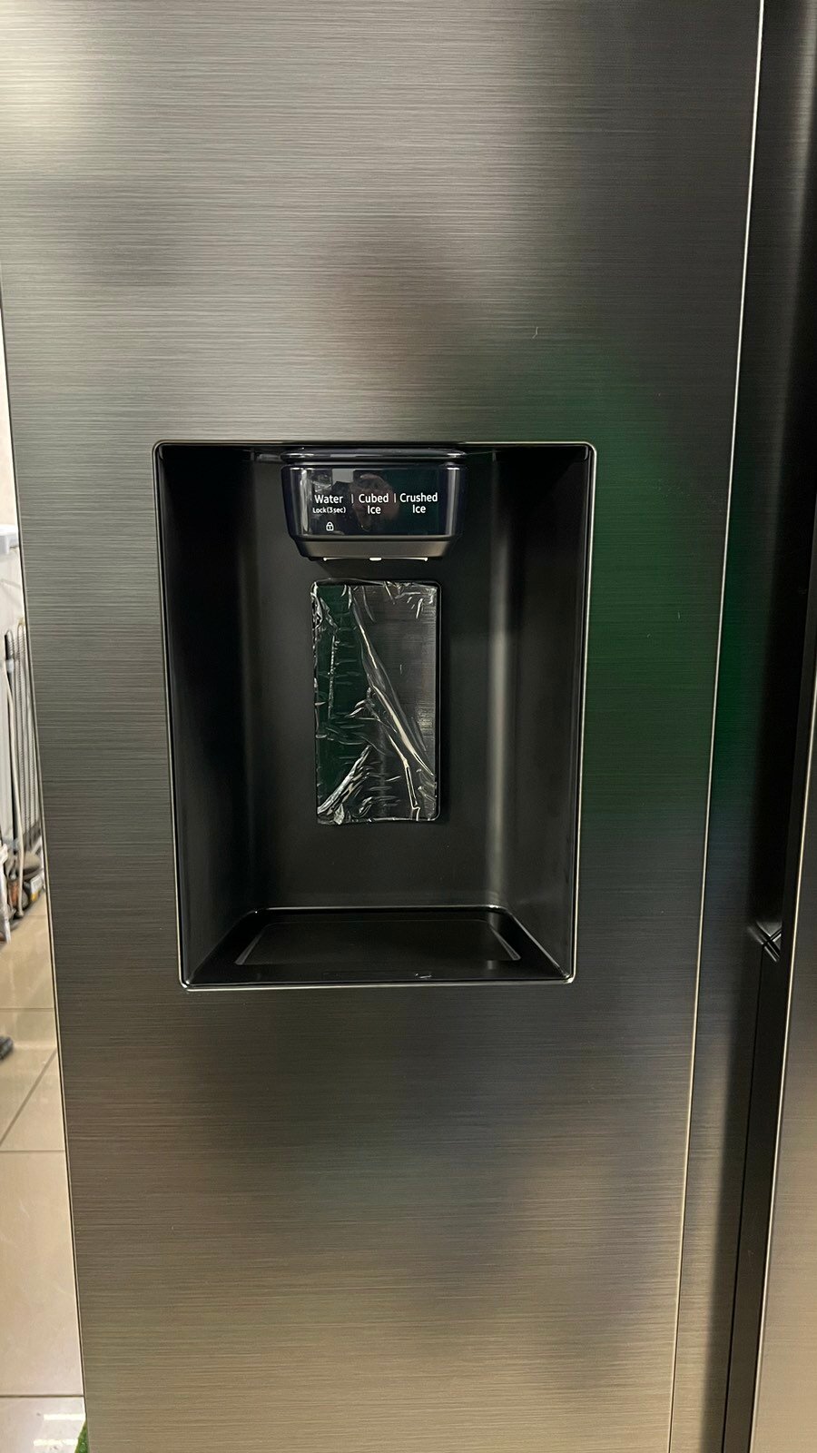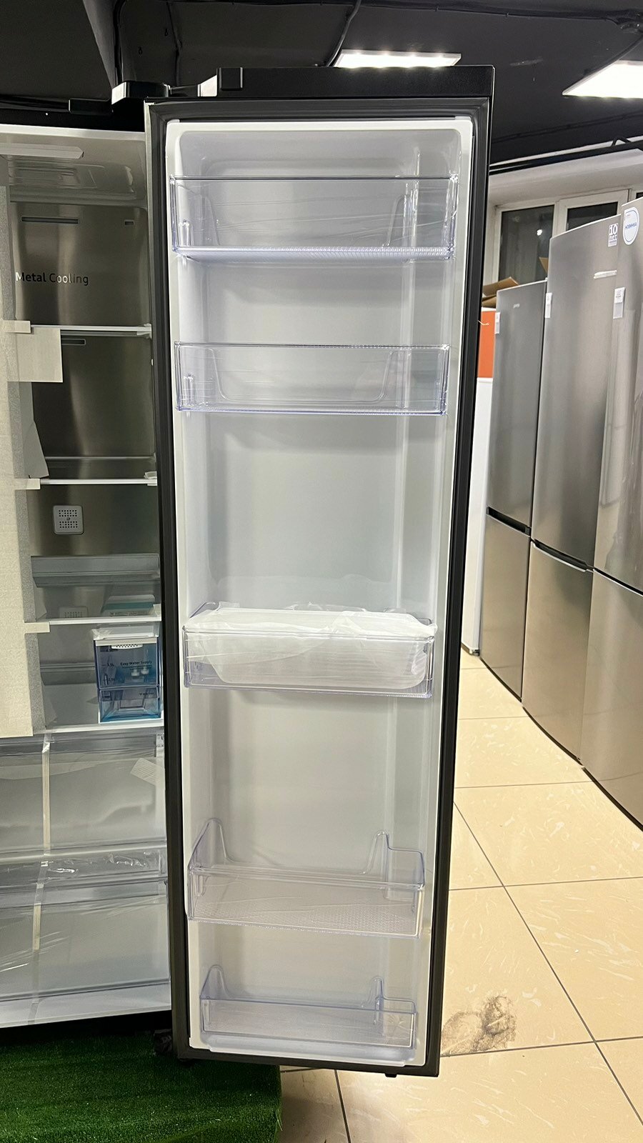 Отдельно отмечу диспенсер для воды. Очень удобно. Т.к. холодильник размещён у стены без доступа подключения воды. Сравнительно небольшая глубина для холодильников side by side. Без дверей свободно «завезли» в довольно узкий дверной проем в 68 см |