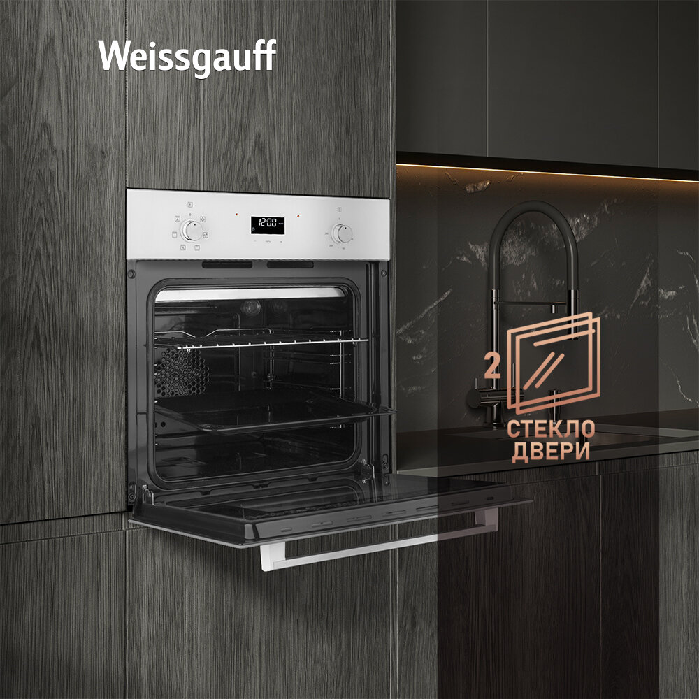 Купить Электрический духовой шкаф Weissgauff EOV 672 SW с конвекцией и грилем, объем XL 64 л, гриль и конвекция, 3 года гарантии