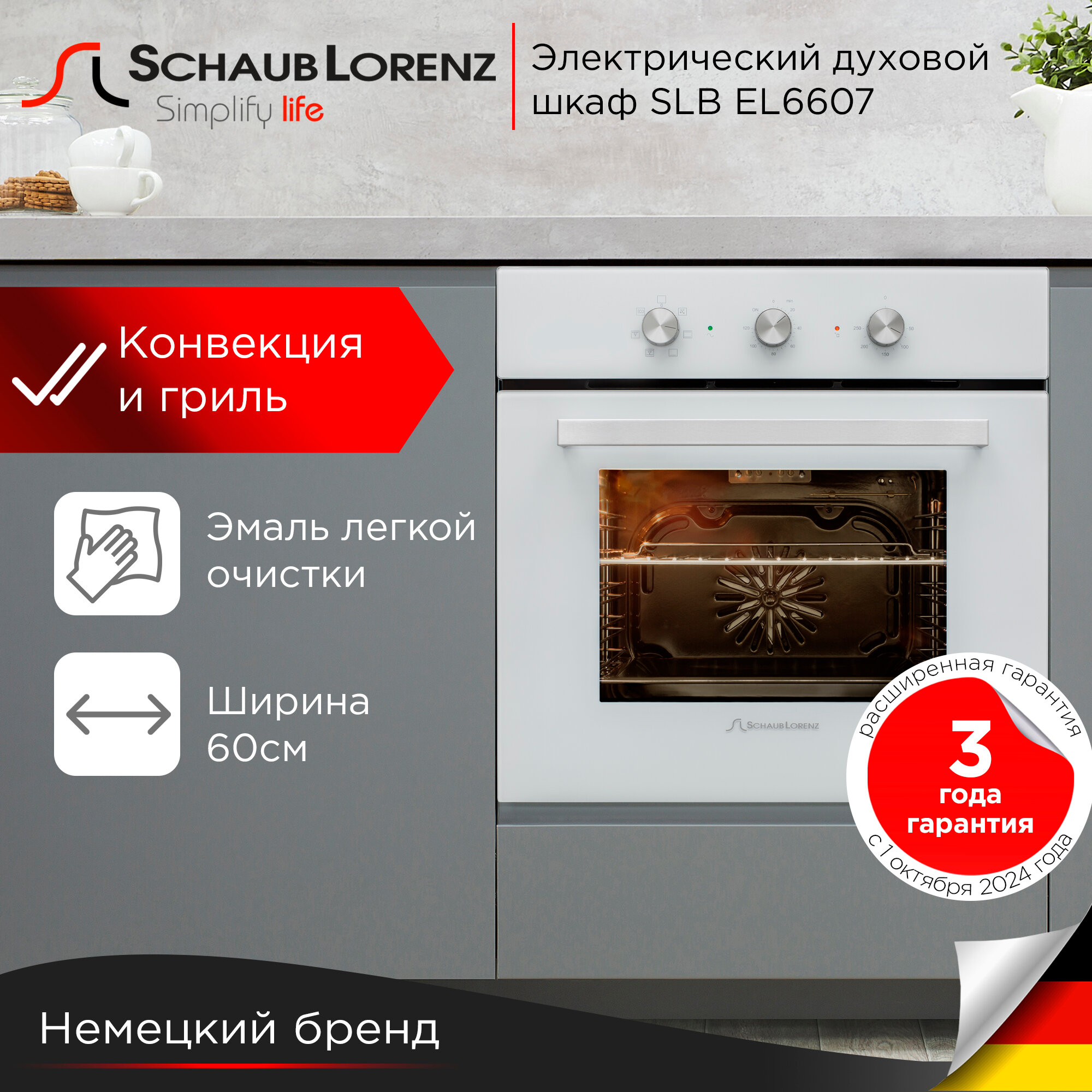 Духовой шкаф электрический встраиваемый Schaub Lorenz SLB EL6607, 60л, гриль, конвекция, размораживание. интересное:
