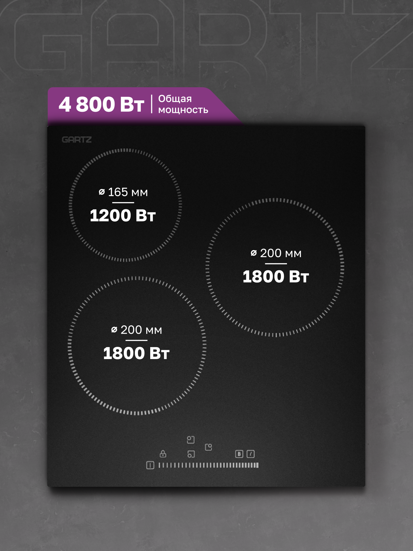 Индукционная варочная панель 3 конфорки встраиваемая GARTZ HIS411B SenciCook, 45см, Boost, автоотлючение, стеклокерамика, черная