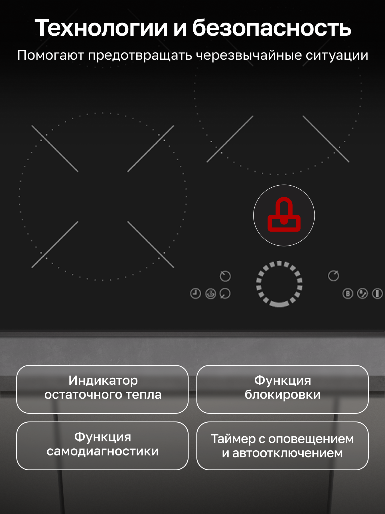 Индукционная варочная панель на 4 конфорки встраиваемая GARTZ HIT610B QuadroCook, ширина 60см, 9 уровней мощности, режим Boost, сенсорное управление, таймер, автоотключение, стеклокерамическая, черная